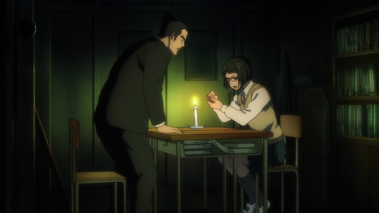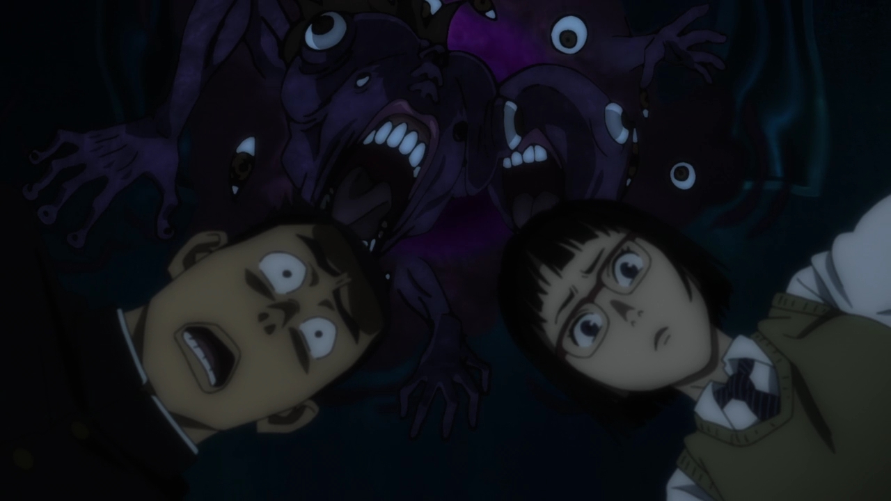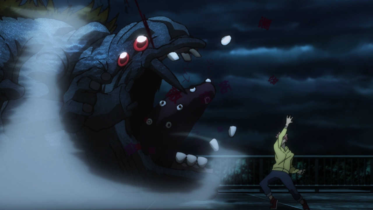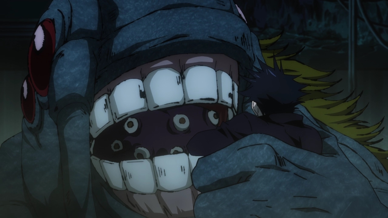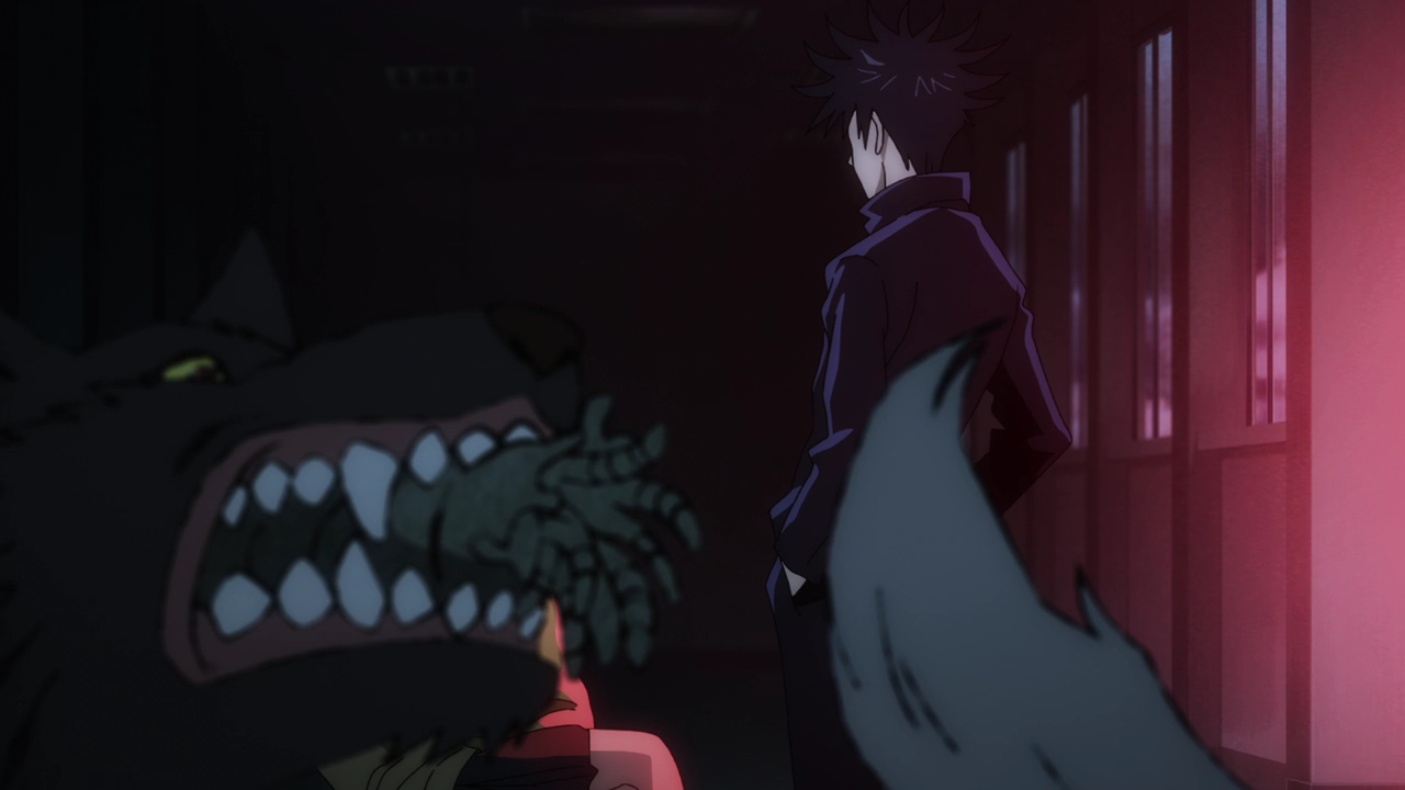 Fushiguro and Itadori head to the school to stop his friends from breaking the seal off the cursed object, Ryoumen Sukuna’s finger, or else they’d die. And boy he wasn’t kidding. The monsters in this show are no joke, their designs are very scary and unsettling. The way they appear from the floors and ceilings is equally scary and I could actually feel the fear from the characters. This is when things get really exciting as we got to see the amazingly animated action scenes and it was just so fun to watch. I did think it was pretty funny that Itadori somehow was able to jump through the window of the 4th floor! And kick the monster! Because…yeah, sure! That’s probably the only thing that took me out of the action scenes, Itadori’s strength, but they kept talking about his crazy strength from the start so whatever. It was extremely fun to see the designs of the curses and Fushiguro’s shikigami, and of course enjoy the action because it was wonderful. I feel like MAPPA’s just been getting better and better with every show, and while I did not like God of Highschool (I ended up dropping it), the animation there was just as amazing. So it was just so fun to watch everything.
