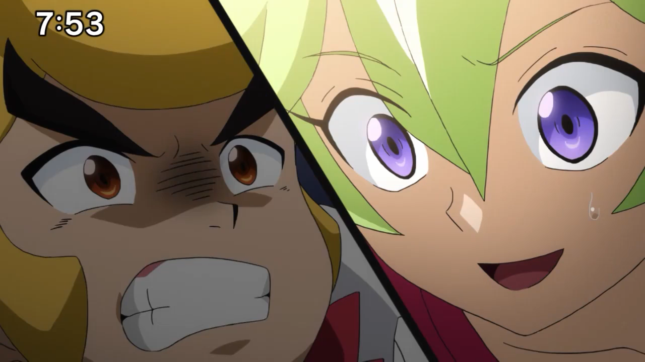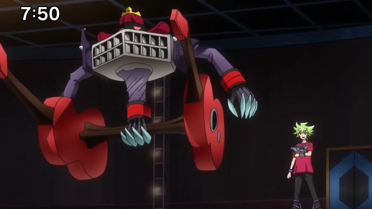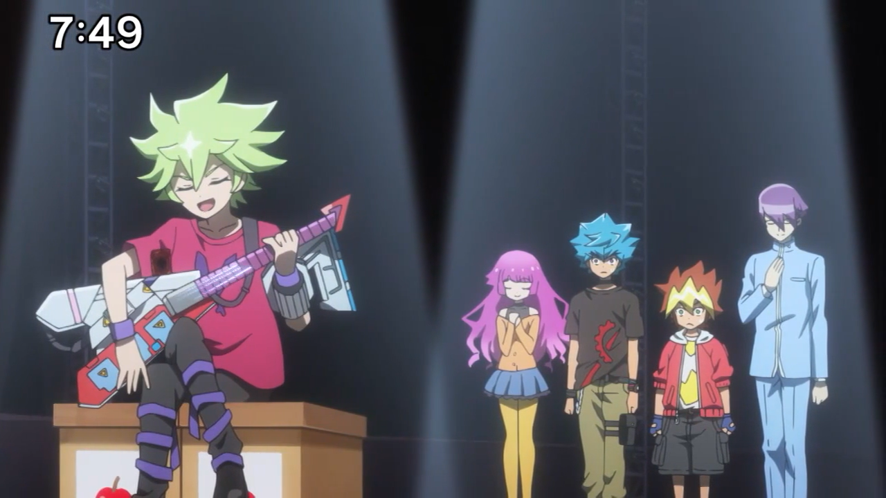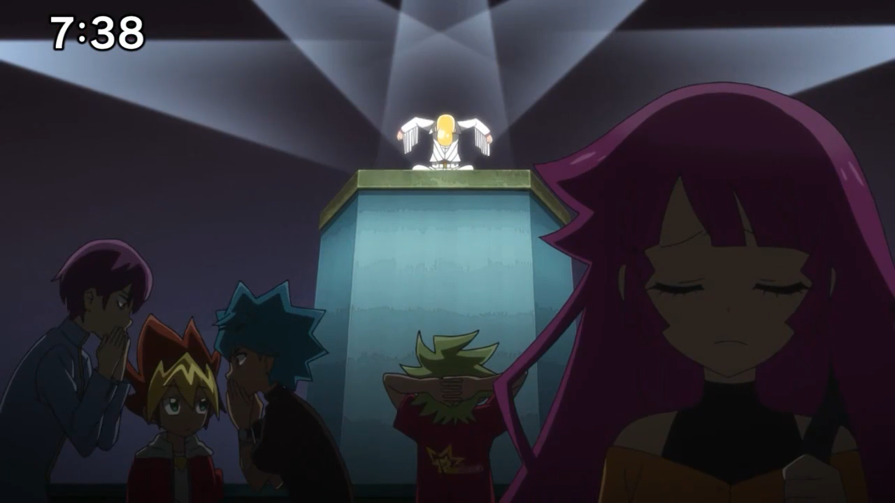 In fact, I would say this episode made me like Roa’s character way more than his debut. This time we actually got to see just how much of a sassy little shit he is, and yet I can’t help but love him for it. And what’s better was how Getta just wouldn’t put up with it. When Roa had reached out to stop him from falling out, Getta decided to let go because he was so mad at him when he heard Roa was going to ask Yuuga if he could make him a high performance drumming robot drummer to fill the void Getta had left behind, whelp. (But hey, at least he changed his request to make a drum-set dueldisk, which is undoubtedly for Getta to use whenever he returns to the band.) Another thing worth noting is that the way they highlighted Roa’s natural stage presence and his dazzling aurora came off sooooo much better. I really wished they had done it this way for his debut, because while it was funny, I found myself enjoying this approach a lot more. I also really enjoyed his “divine draws”, (Yuuga’s and Rook’s expressions throughout whole thing were gold!) his cheesy lines and breaking into a song in the middle of the duel.