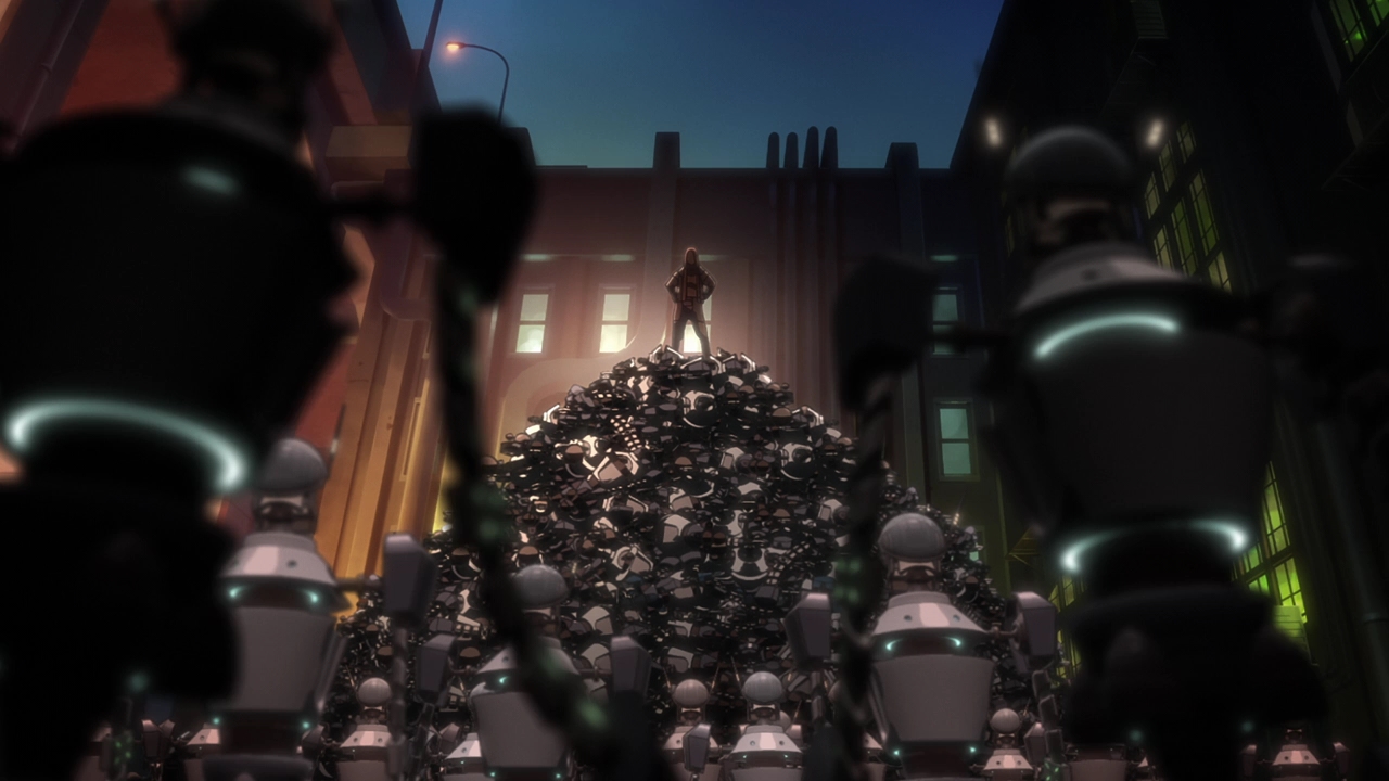 Ordinary Girl baffles me. Rushing out onto the street to save a cat, not paying with money that was hers given that Courier said he doesn’t want it, and rushing to save that same cat again even though Akudama were attacking the police station were all examples of irrational thinking. The only rational thing she did was pretend to be one of them after they decided they’d kill her for being an ordinary girl.