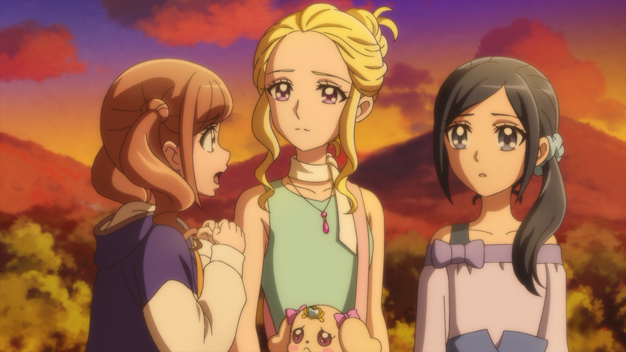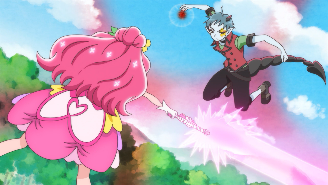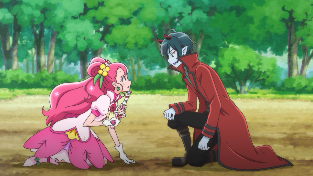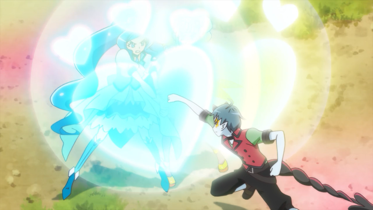 Although I am of two minds on the reveal: On one hand, I did kind of wish Nodoka had an actual illness, something like cancer or leukemia or some respiratory infection, as something like that could give kids who are going through similar illnesses someone they can relate to, and give Nodoka a much more exploitable weakness. But on the other hand, it was really ballsy of Toei to go with this idea, and even managing to get some good mileage out of it, both for this episode and maybe in the future. It also gives Nodoka a much more personal stake in the whole saving the world business, something I always appreciate. Seriously, this is what I wanted in seasons like Happiness Charge! Favoring actual, nuanced character development and not being afraid to do something different over relying on cliches and trying to be something it isn’t.