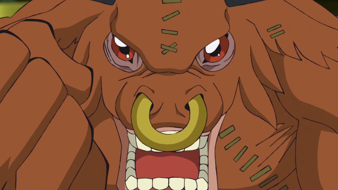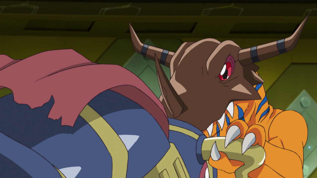 In any case, Taichi and Yamato join forces with Leomon to recover the cargo that Minotaurmon has taken custody of which may relate to the Holy Digimon. And can I say that Minotaurmon’s design creeps me out? The fact that he’s not actually a bull-like creature and is just something inside of a suit just seems so creepy to me. Kind of like Gabumon in a sense but at least Gabumon just wears fur on top and not in a zip up suit.