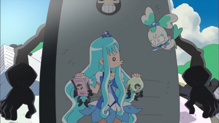 And speaking of the devil, can we just give Cobraja some credit? Because man, he really put in the work today. He took full advantage of the the kids’ frustration with their summer homework, and created a freaking swarm that really gave the girls a real headache. But my favourite part (apart from Erika’s procrastination of her summer homework), was actually the eerie start to the episode. We saw a mother is trying to tell the kids to do their homework and chores, and warns them that if they don’t they will be turned into a Desertian — and sure enough, they did. It was so chilling to see the transition from a noisy apartment to sudden dead silence due to everyone’s heart flowers being stolen away. Even more so when the same happen at the park, and then all the sudden the mob shows up. I would have to say this was Cobraja’s greatest feat yet.
