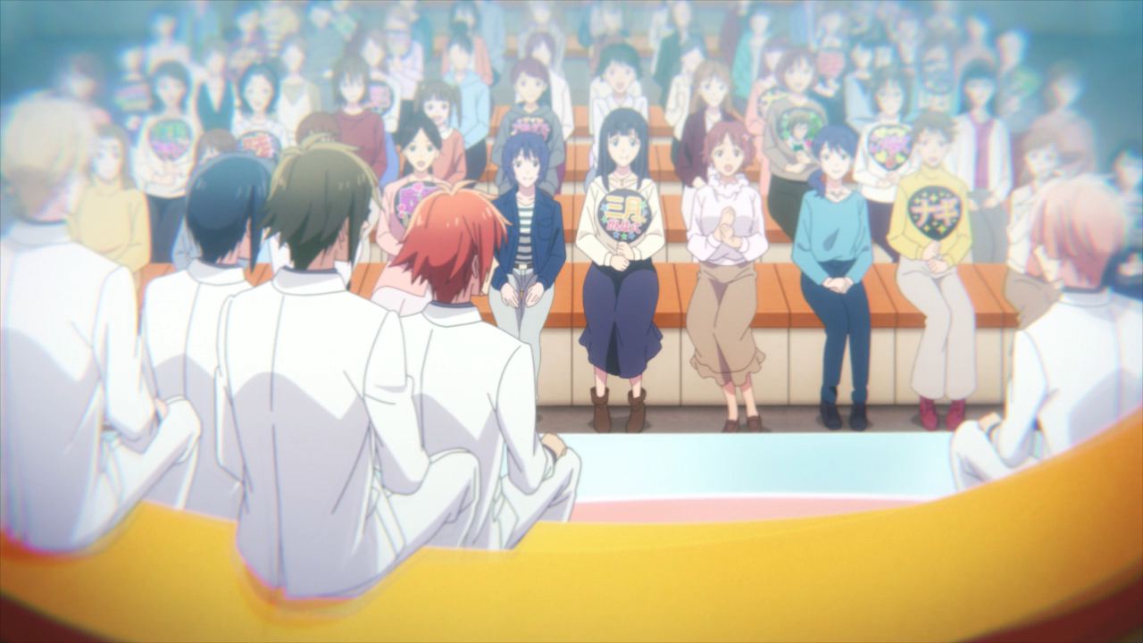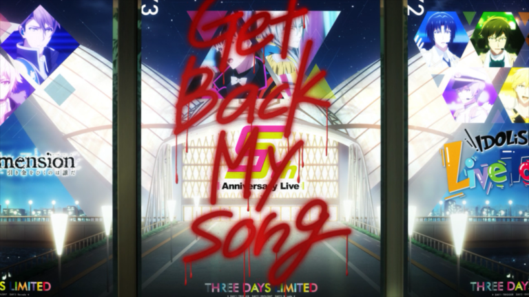 Last but not least, with the toxicity of unhappy fans being the focus of the episode, what better way to end it than to have what looked to be looking bleak with three fan girls expressing how they were falling out of love with Idolish7. As mentioned earlier, I can relate, but gosh I was like, “NO WE NEED GOOD FANS LIKE YOU TO STICK AROUND!” Thankfully it appeared they fell back in love with them again after they ran down the memory lane of the good times and how they became a fan in the first place. But then a solemn shift when they take notice of the graffiti sprayed on RE:VALE’s poster. It just goes to show, nobody is immune to this kind of hatred, be it a fan or someone else who doesn’t like the fact they are doing a cover on it.