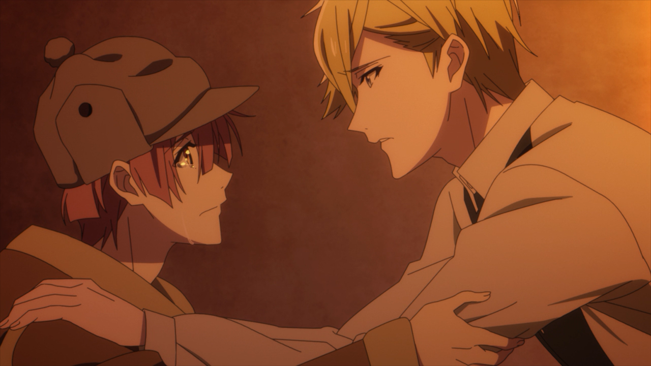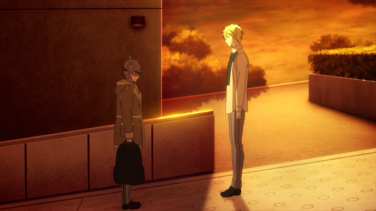 I also really loved the way the scene was put together as well. One of the things this show has done a phenomenal job with is playing with imagery. Mitsuki was positioned on the lower end of the slope, a wall behind him and he is standing in the shadows. The wall is too high to climb, obstructing him from moving forward, he is being overshadowed by Nagi who is standing out in the open and the sun on the elevated angle of the slope. And when Mitsuki opened up, Nagi was finally allowed toacross the line that Mitsuki had drawn between them, and was able to extend his hand into the shadow. He even lowered himself to try and be on the same eye-level of him. This scene gives me a lot of feelings okay!!!!! These two are my best boys!!!