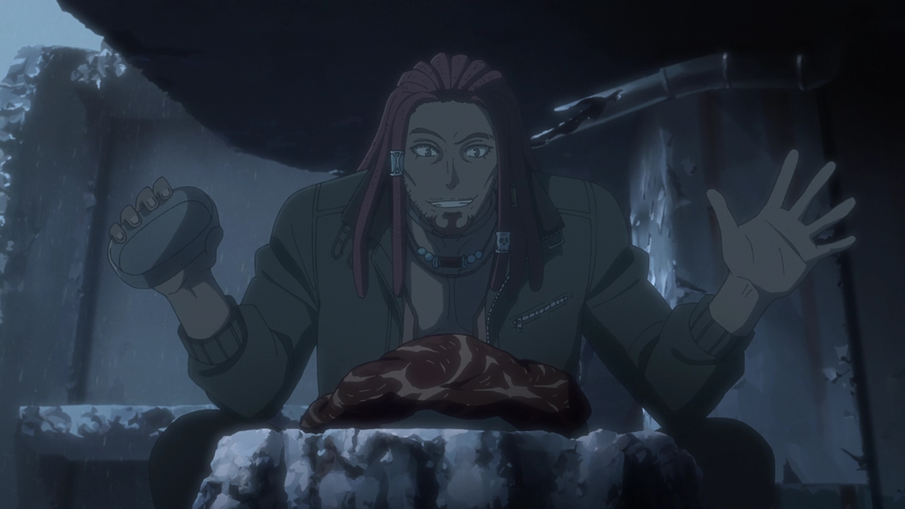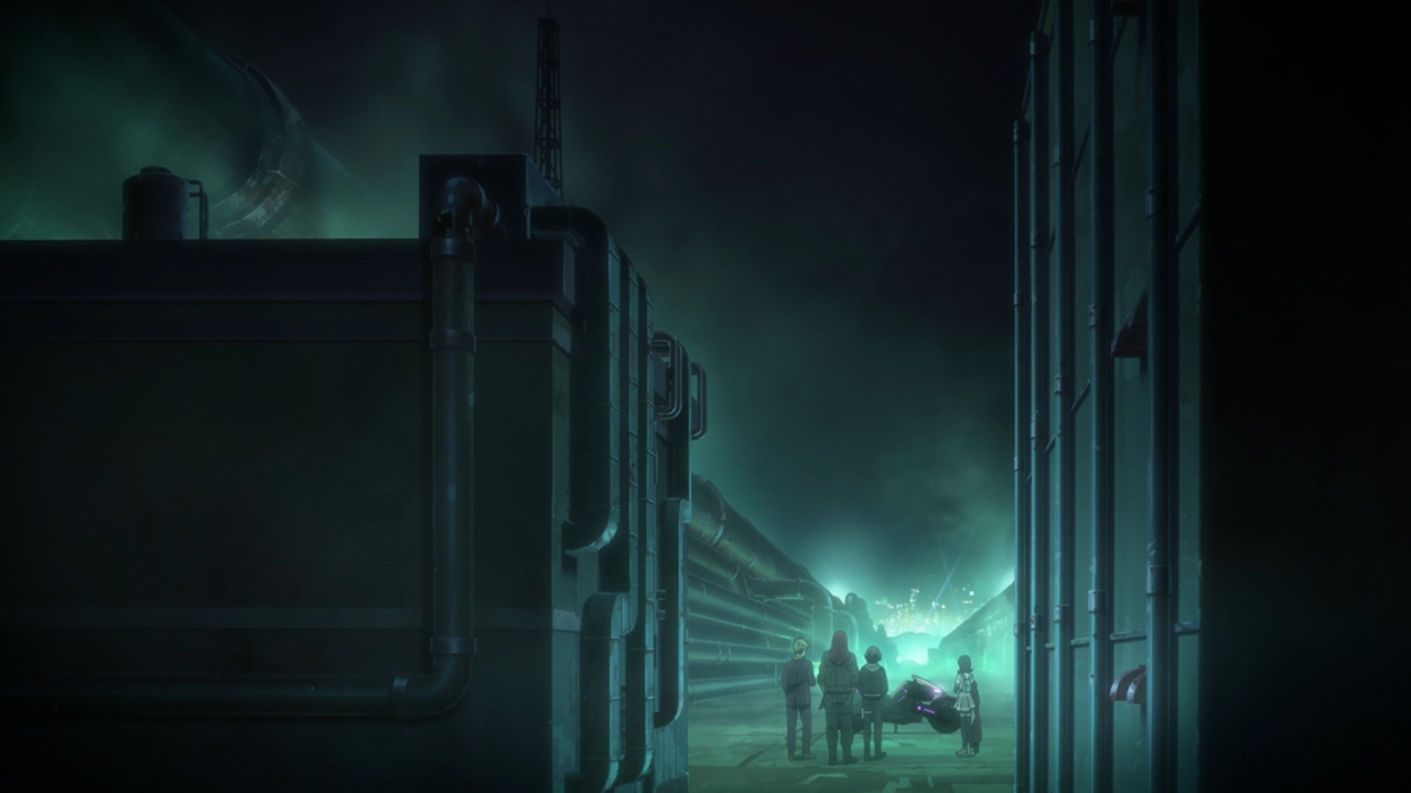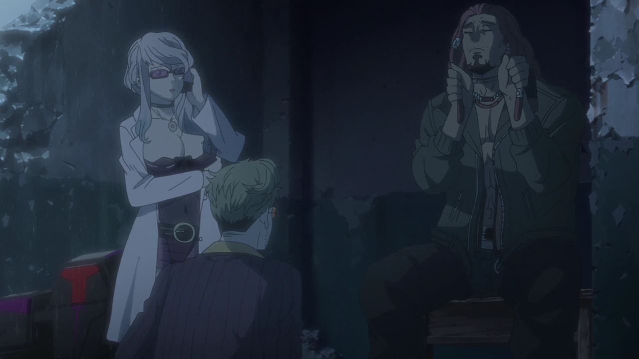 As for the Children, which I guess I’ll call them now (Boy and Girl respectively), at first it sounded like they were a product of human experimentation. And that could still be it, but the rabbit and shark presentations have always been relevant in each episode and they mentioned Kyushu Plant. We know that many things are made there, such as Courier’s bike for example. It could be that the Children were made there too? The way they spoke about food and not feeling hunger just made them not sound human. This Professor of theirs is probably their creator and programmed them to do a certain task, and whether that task is going to be done at Expo Park we don’t know yet. Well, we don’t really know anything because Swindler stepped in. Maybe a little frustrating in terms of not getting info, but I’m not going to lie Swindler playing big sister to them was pretty adorable. Whether they’re robots or actual experimented children, it’s a toss up.