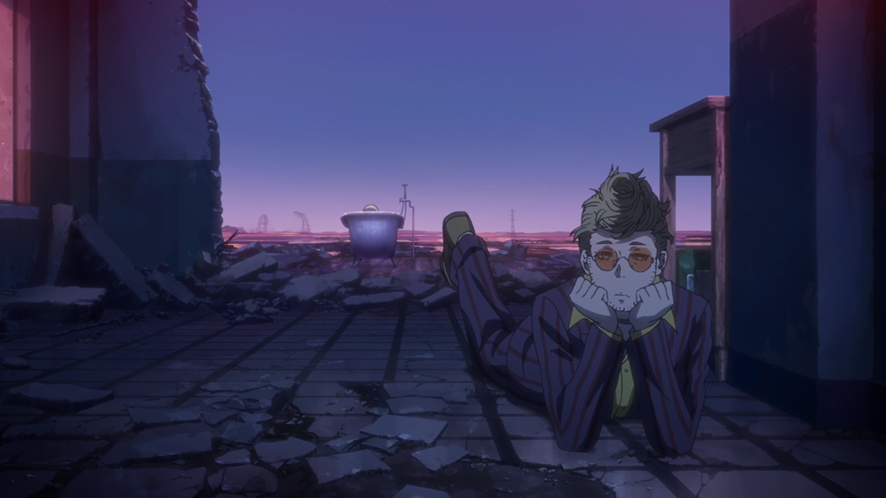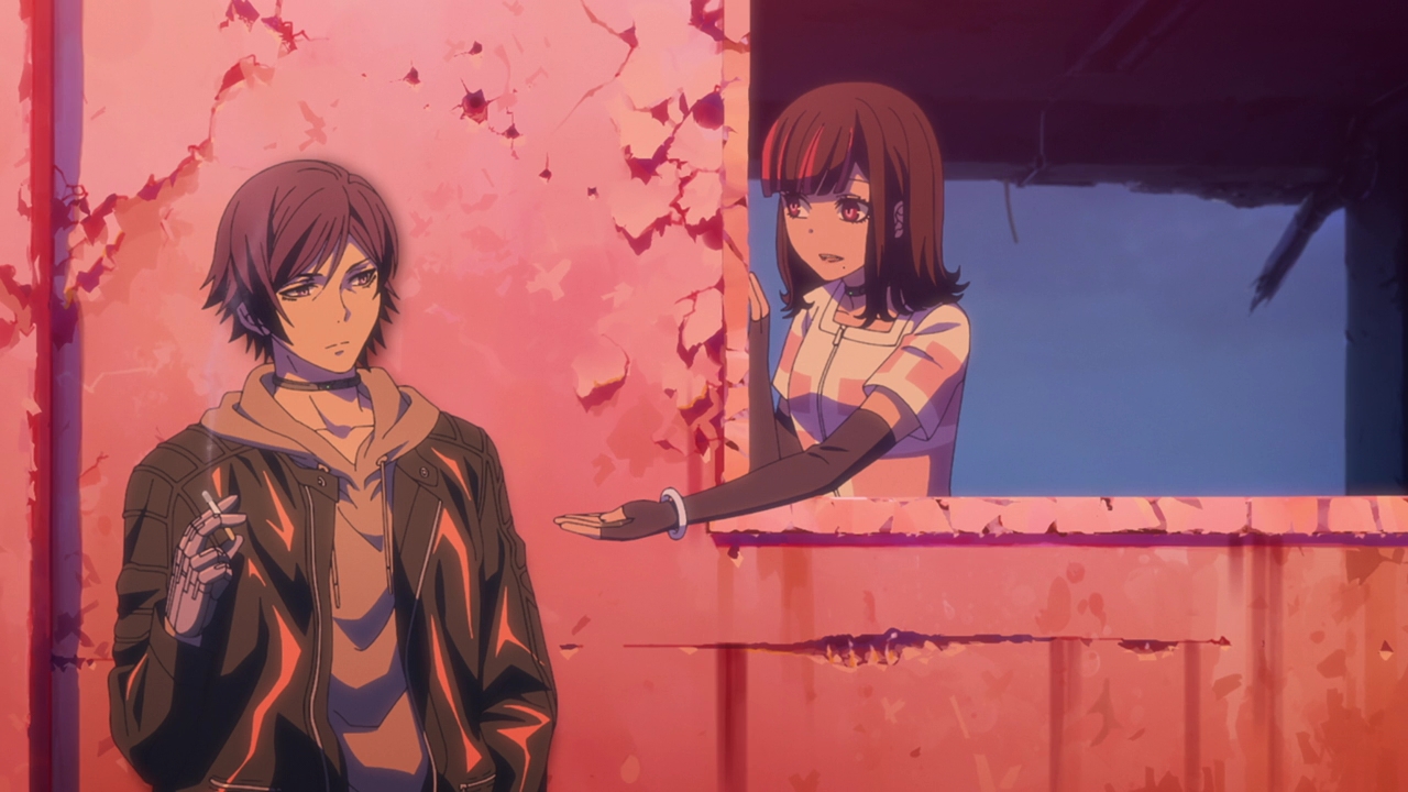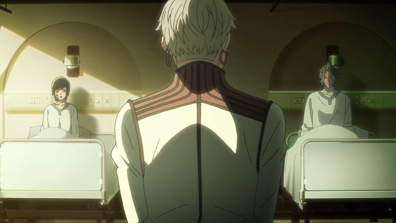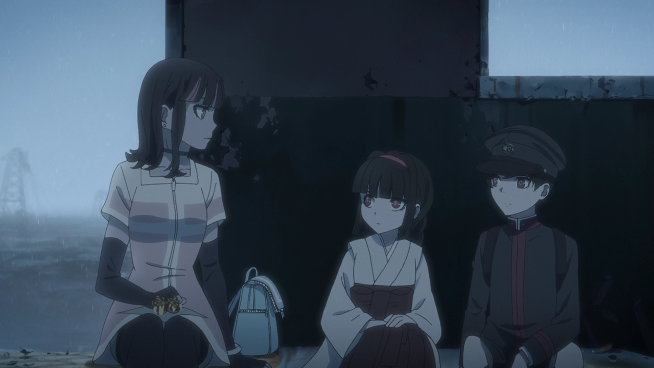 As for the Children, which I guess I’ll call them now (Boy and Girl respectively), at first it sounded like they were a product of human experimentation. And that could still be it, but the rabbit and shark presentations have always been relevant in each episode and they mentioned Kyushu Plant. We know that many things are made there, such as Courier’s bike for example. It could be that the Children were made there too? The way they spoke about food and not feeling hunger just made them not sound human. This Professor of theirs is probably their creator and programmed them to do a certain task, and whether that task is going to be done at Expo Park we don’t know yet. Well, we don’t really know anything because Swindler stepped in. Maybe a little frustrating in terms of not getting info, but I’m not going to lie Swindler playing big sister to them was pretty adorable. Whether they’re robots or actual experimented children, it’s a toss up.