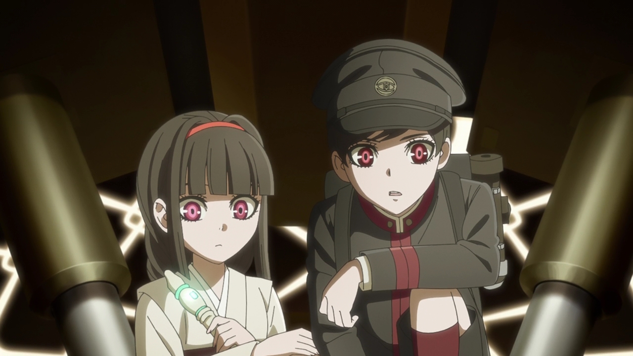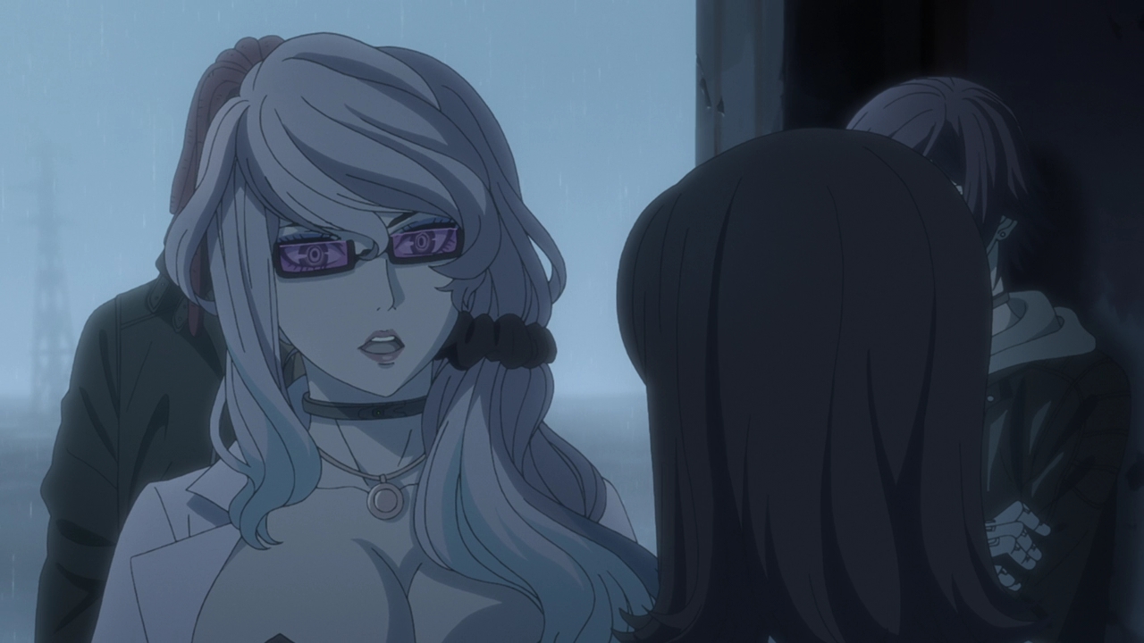 As for the Children, which I guess I’ll call them now (Boy and Girl respectively), at first it sounded like they were a product of human experimentation. And that could still be it, but the rabbit and shark presentations have always been relevant in each episode and they mentioned Kyushu Plant. We know that many things are made there, such as Courier’s bike for example. It could be that the Children were made there too? The way they spoke about food and not feeling hunger just made them not sound human. This Professor of theirs is probably their creator and programmed them to do a certain task, and whether that task is going to be done at Expo Park we don’t know yet. Well, we don’t really know anything because Swindler stepped in. Maybe a little frustrating in terms of not getting info, but I’m not going to lie Swindler playing big sister to them was pretty adorable. Whether they’re robots or actual experimented children, it’s a toss up.