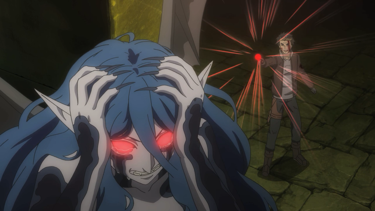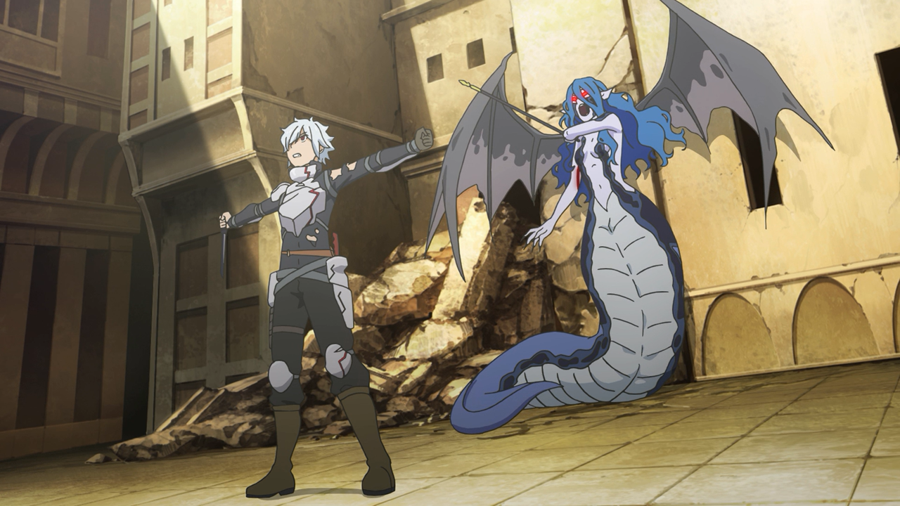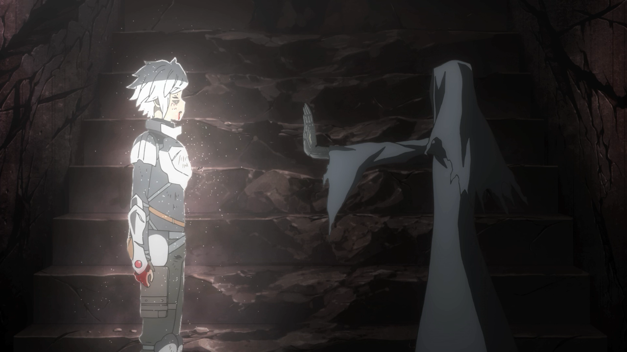 Oof, my poor heart. As expected, this week’s episode was pretty brutal and bloody to watch. Both Bell and Wiene were put through a lot of pain. Dix not only ripped Wiene’s stone off her forehead (which was absolutely brutal to watch), but he applied a curse to drive her into madness, taking her affections and desperation to find Bell and creating a hallucinations of him to send her on a rampage to the surface. Bell had hoped to reach and rescue her before she got there, but once again he was a little too late, with Loki’s Familia who pinned her down just seconds after he arrives to the scene.