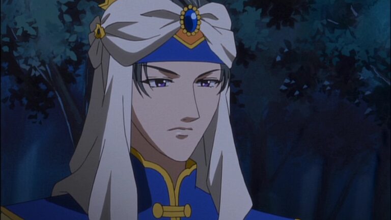 As Shuurei, Eigetsu and Ryuuren are leaving and heading home to the Kou household, a strange man approaches them by the pond. He seems to know who Ryuuren is and vice versa. Who is this person and what does he want with Ryuuren?? When Shuurei approaches him and asks him who he is, the man starts to glow and float up into the sky, then disappears! His final words are: “Those who love this country will undoubtedly be protected by the Eight Colored Enlightened Ones.” Wait, so they’re real??!