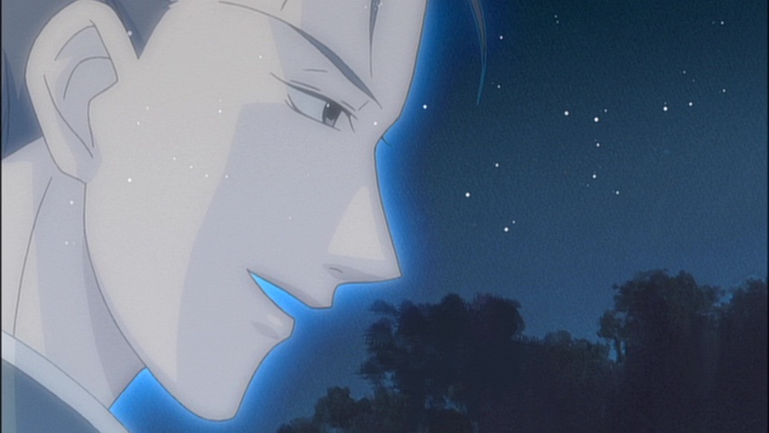 As Shuurei, Eigetsu and Ryuuren are leaving and heading home to the Kou household, a strange man approaches them by the pond. He seems to know who Ryuuren is and vice versa. Who is this person and what does he want with Ryuuren?? When Shuurei approaches him and asks him who he is, the man starts to glow and float up into the sky, then disappears! His final words are: “Those who love this country will undoubtedly be protected by the Eight Colored Enlightened Ones.” Wait, so they’re real??!