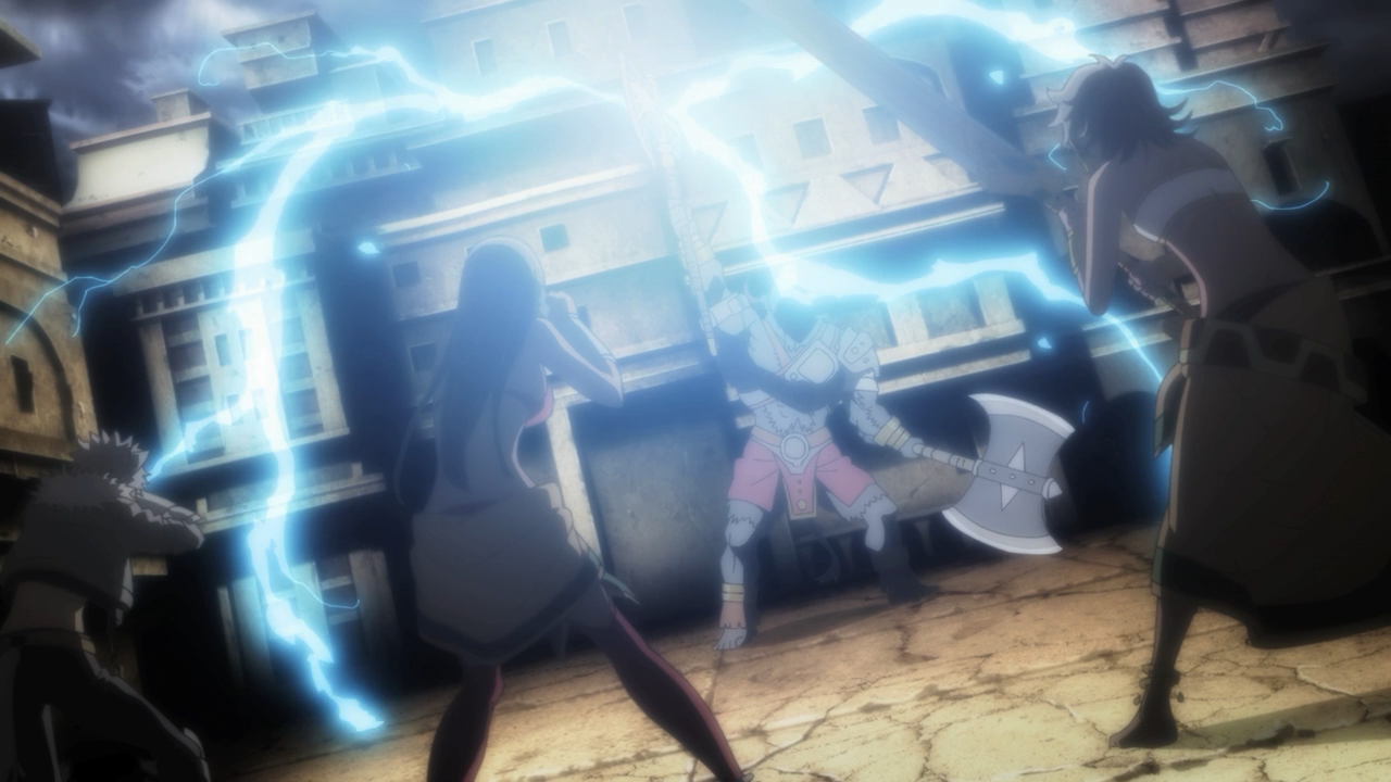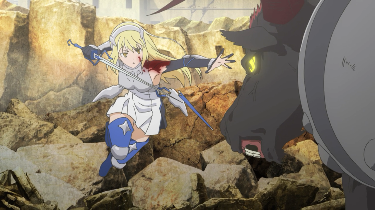 Bete, Tione and Tiona were the first to go after Asterius, however none of them stood a chance against him. It certainly didn’t help that Asterius possessed a magic weapon which not only blows up the area, but also inflicts paralysis, which is why Welf told everyone to run for the hills. After he used that, Finn sent Ais in, and we got to see the grace of the ‘War Princess’. She was able to slice off his arm wielding the axe, however she ended up substaining injuries of her own, so Finn and Gareth took over– only to . Admittedly it was a bit of a shame because I kind of wanted to see these two fight too, haha! The Loki Familia is certainly in good hands with Finn’s sharp mind and leadership as Captain.