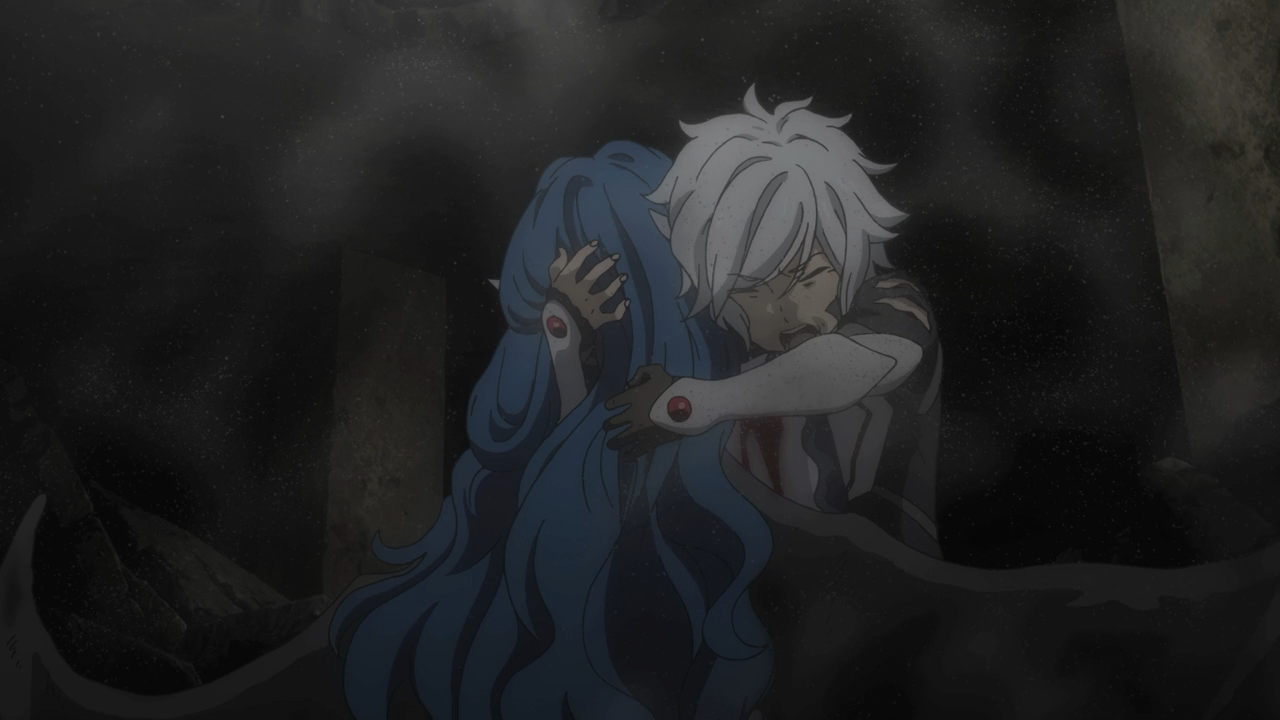 Man, talk about a clutch excuse from Bell. I commend him for being able to claim Wiene as his prey in attempt to buy enough time to save her, and protect his Familia’s reputation. While it did stupefy Loki’s Familia, unfortunately other Adventurers were unwilling to comply when not only there’s a rare monster to catch, but that said monster is running rampant throughout their city. As result, despite Bell’s efforts, he was not able to save her, and she ended up tragically dying in his arms. It hurt my heart so much to see her fading away, but there was a little bit of comfort seeing that she had regained her sense of reason, and was able to see Bell was beside her and despite everything she had just gone through, she still thanked Bell for being there with her.