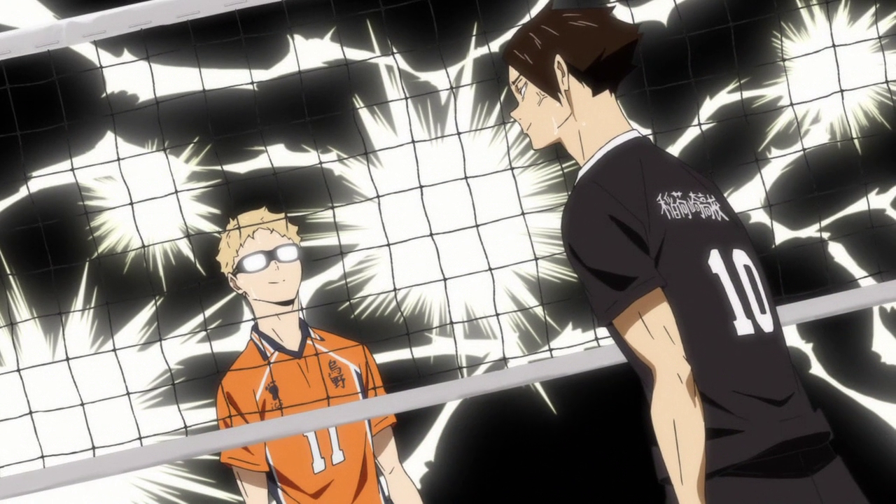 So we get resolutions to both Tsukishima and Nishinoya’s situations. And while Tsukishima’s was… a little anticlimactic, it does show some character growth on his part as he is starting to think about his blocks as a team effort rather than a one-on-one fight. I honestly thought that Tsukki was going to have to try something new to try and stop Suna’s weird spikes. And while that wasn’t necessarily wrong, he just did it in a way I hadn’t expected. He was actually missing his blocks semi-on purpose to try and get the guys behind him to get used to Suna’s attacks. But once they were able to get used to it, Tsukki was able to lead Suna into the direction he wanted rather than vice versa. But man, it’s always amusing to see Tsukki use sarcastic kindness to get under the other players’ skins.