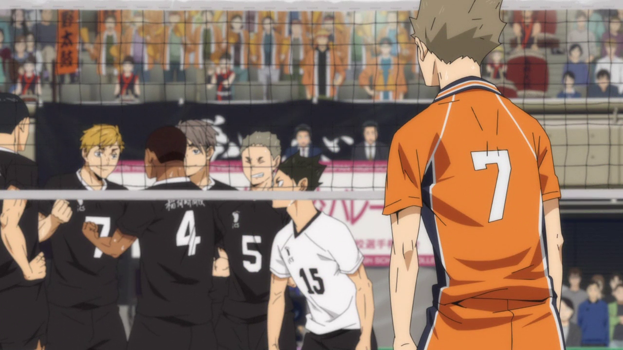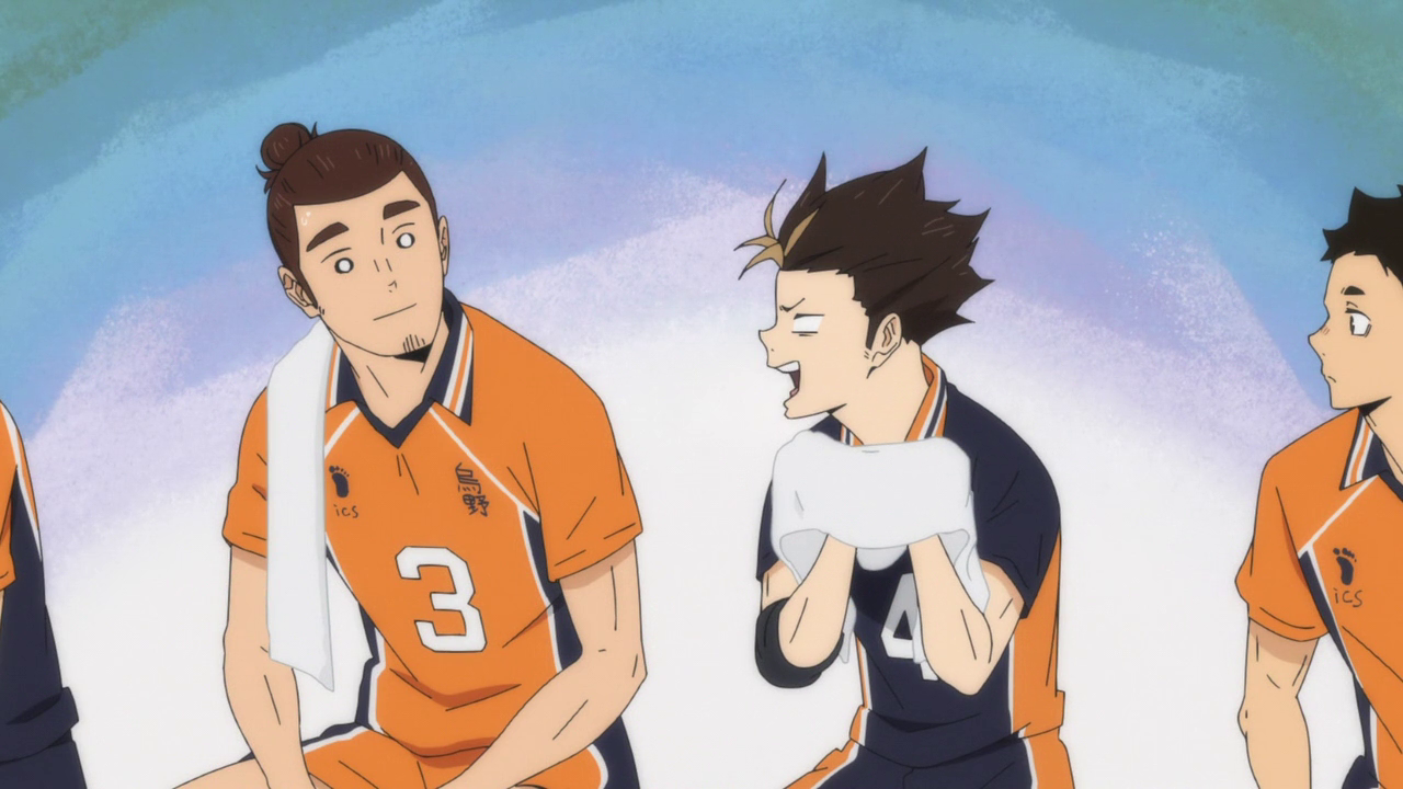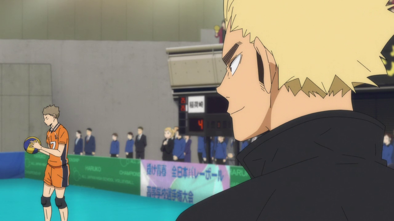 It was interesting to see Nishinoya and Kinoshita’s character arcs kind of come together at the end and I do like how they changed up how Kinoshita was able to contribute to the team. Sure, it was sad that he wasn’t able to make a Yamaguchi comeback with his serves, but if he had, I feel like it would have been too repetitive and it would have just made Kinoshita Yamaguchi 2.0. And I don’t think it’d be fair to him as a character to just be another Yamaguchi. So I was glad to see that his contribution didn’t necessarily have him be the hero on the court, but someone who was able to be a hero to another. Especially since Kinoshita was the one to work with Nishinoya the most. And while he didn’t get the recognition from all the people in the stands (or even most of his team for that matter), Nishinoya was still able to acknowledge it and was genuinely grateful for his help.