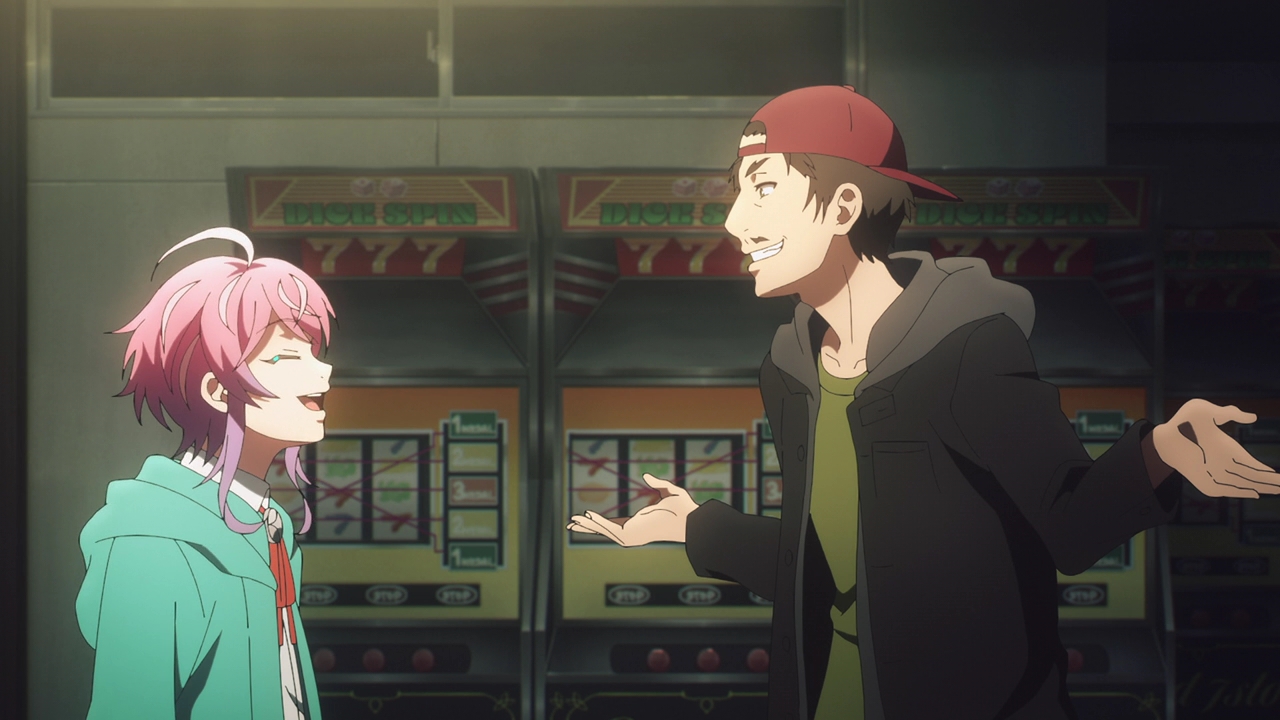 Ramuda gave some big hints as to his true nature this time (“who’s the kind human…”, the final shot of the lollipop) this episode. “Nodo” (throat) translated as “voice” was an interesting choice, because “throat” suggests a broader category of things than just rapping/singing, but translating it more literally sounds kinda clunky to me.