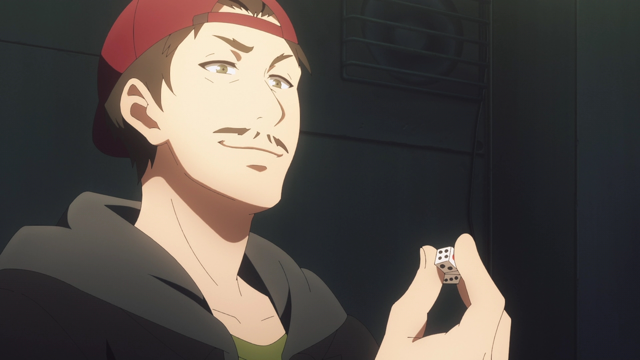 Second half we have Dice getting screwed over from his horrible gambling problems, but what else is new? I do think there must be something going on with Fling Posse, or at least with Ramuda after what Rex said last time. That quiet shot of Ramuda on the couch felt a little too significant to ignore. Either way, Ramuda gets a call that Dice screwed up and they need to fork over some money, so he and Gentaro find the place that they’re at. Of course handing over the money would be too easy and boring so they…bet to get out of the bet. The word bet is just giving me stress now. Apparently these dudes bet against Fling Posse on their rap battle and lost so they hold animosity towards them, which is funny because it’s not even their fault. Betting their voices by burning it with a hairdryer (what am I even typing), they bet through whoever gets the highest sum with dice. Of course these guys cheat with weighted dice but somehow Dice wins through slamming the dice down and having one die face up all weird so three sides would face up. Agreed, it wasn’t even a roll but the rules were the number of pips facing up so…yay. But it’s rap time and of course Fling Posse make it out okay and they win their qualifier as well. Rex was the only one of the trio that didn’t really get to do anything this time but he took pictures at least? Also typing dice and Dice over and over is hilarious.