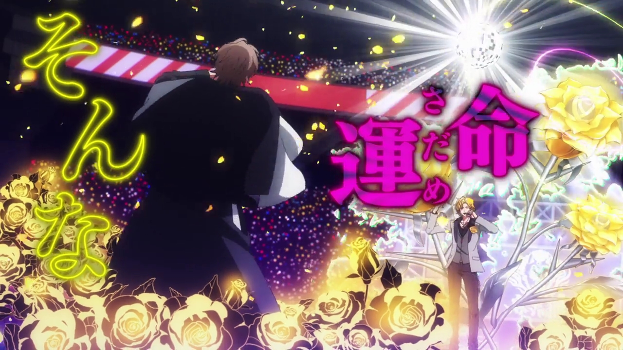 The visuals were just as fun, and actually made me laugh this time. It’s a little hard to take this battle seriously when you have Fling Posse attacking Matenro with teddy bears and locking them in boxes with cute doggies that look like them (which I loved). Again, the visuals go by quick so it’s hard to look at the screen and the lyrics back and forth so watching it again is a good idea. In the end, Fling Posse definitely could have won if Ramuda used the microphone Ichijiku gave him, but I like that he followed what he and FP wanted to do as a group. Funny enough, Matenro didn’t feel as close as them and Doppo stole the show at the end, though there was just a lot of focus on FP. Now I have to wonder, what’s going to happen to Ramuda now? He had a pretty big job to do and he decided not to do it, and with all the talk of death it sounds like they could just get rid of him. I have no clue but I’m looking forward to it.