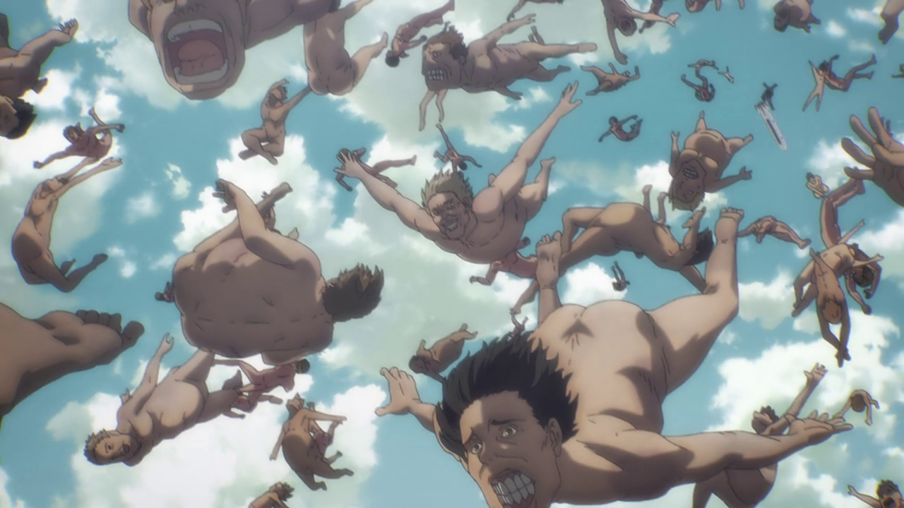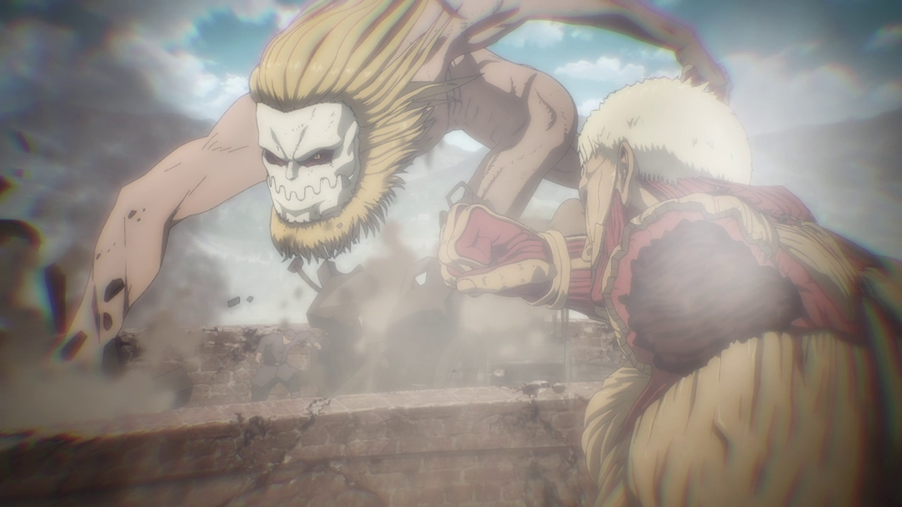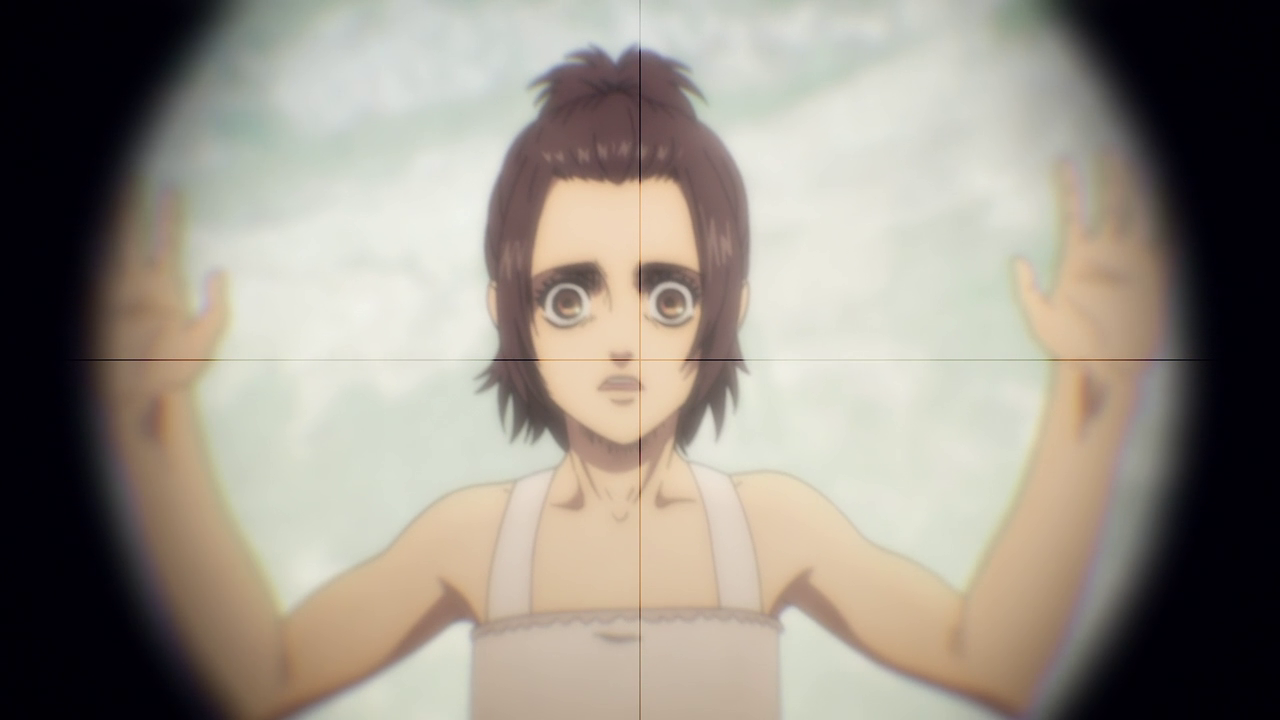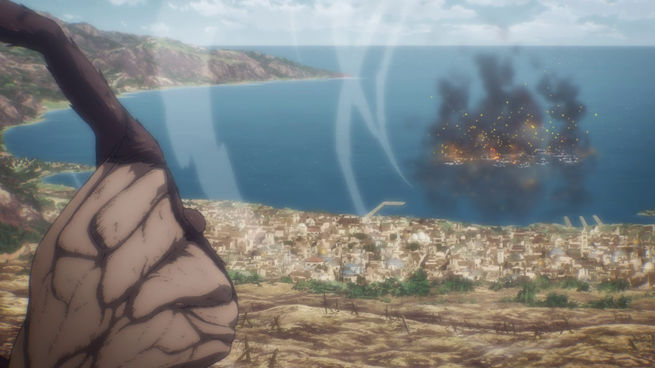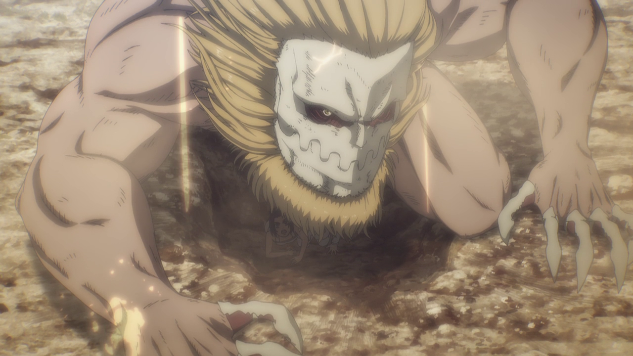 Aside from the new characters, there was A LOT going on in this first episode. Because of the loss of the Colossal and Female titans, another country sought to attack and take over Marley while it was weakened. We get to experience just straight up trench war with the Eldians essentially used as fodder and how they utilize the Titan shifters in battle. Not gonna lie, even though the quadraped titan freaks me out, the way they made it into a war machine of sorts was genius. But man, you gotta feel for the Eldians as the Marleyans have no qualms with just sending them out to die as suicide bombers and such. And you can just tell just how terrified they all are because they KNOW they’re going to die. They even went as far as to drop sacks of people and turned them into titans to use against the enemy Despite their efforts, it’s just sickening to see the people praise the “Marleyan” army for their courage and strength when it literally was all the Eldians’ doing. But that’s propaganda for you.