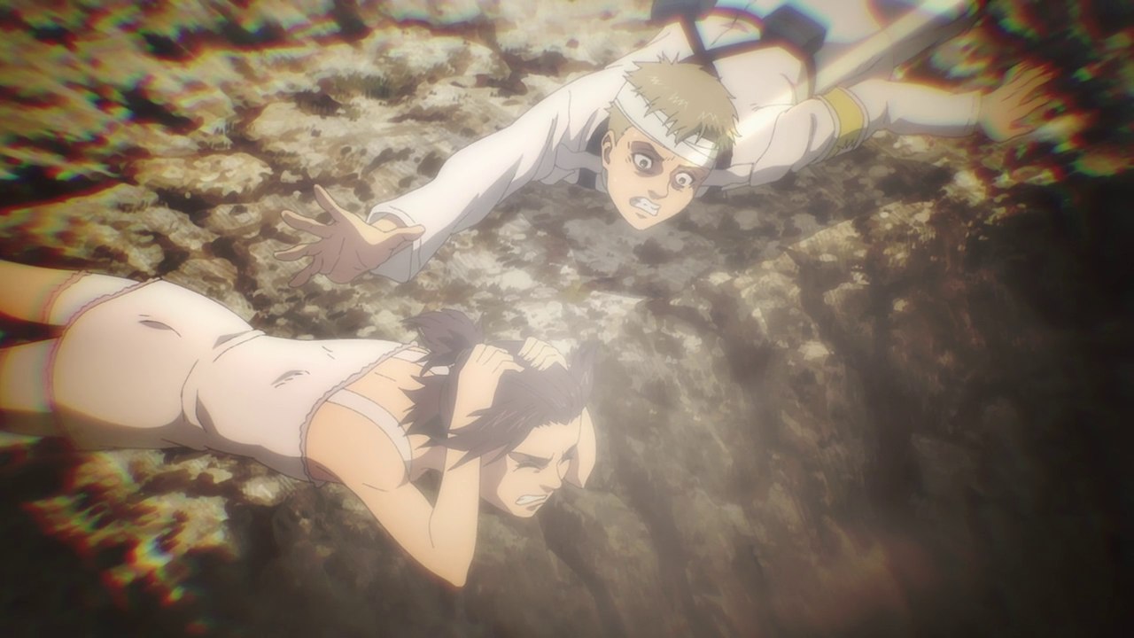 While I am sad over the style shift due to the changing of studios, I feel like it really hammers home that this isn’t the same show that we started out with. Everything changed since the Fire Nation attacked finding out about what lies beyond the walls. Not only that, but with what happens later on, I don’t think Wit Studio would have been able to handle and keep up with what goes down so Mappa was probably the best studio to switch to. I’m also sad that all the Titan Shifters are all in CG, I have to hand it to Mappa that they did a pretty great job at mixing the cg titans really well with the 2d. So, no complaints here on that front.