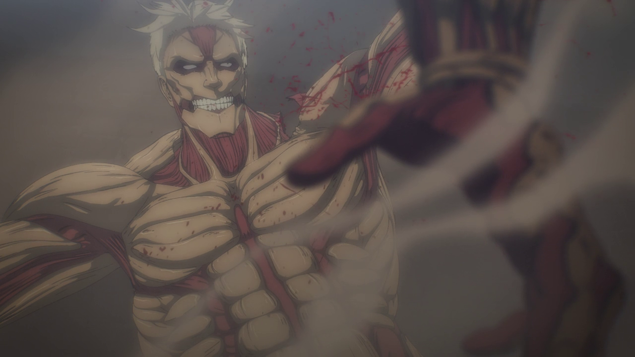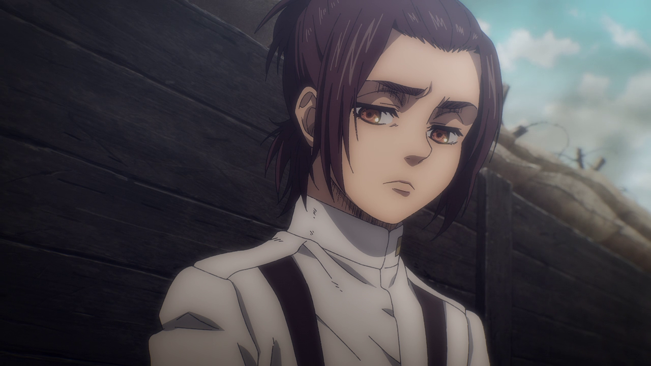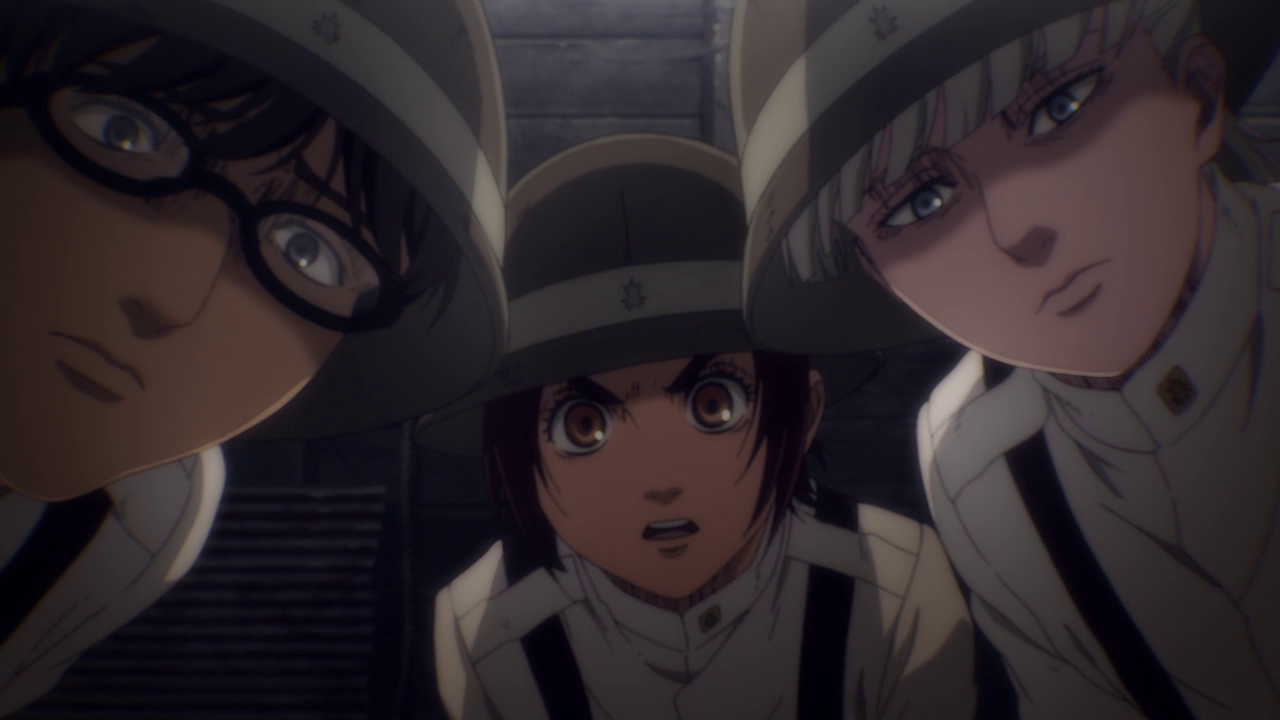 Aside from the new characters, there was A LOT going on in this first episode. Because of the loss of the Colossal and Female titans, another country sought to attack and take over Marley while it was weakened. We get to experience just straight up trench war with the Eldians essentially used as fodder and how they utilize the Titan shifters in battle. Not gonna lie, even though the quadraped titan freaks me out, the way they made it into a war machine of sorts was genius. But man, you gotta feel for the Eldians as the Marleyans have no qualms with just sending them out to die as suicide bombers and such. And you can just tell just how terrified they all are because they KNOW they’re going to die. They even went as far as to drop sacks of people and turned them into titans to use against the enemy Despite their efforts, it’s just sickening to see the people praise the “Marleyan” army for their courage and strength when it literally was all the Eldians’ doing. But that’s propaganda for you.