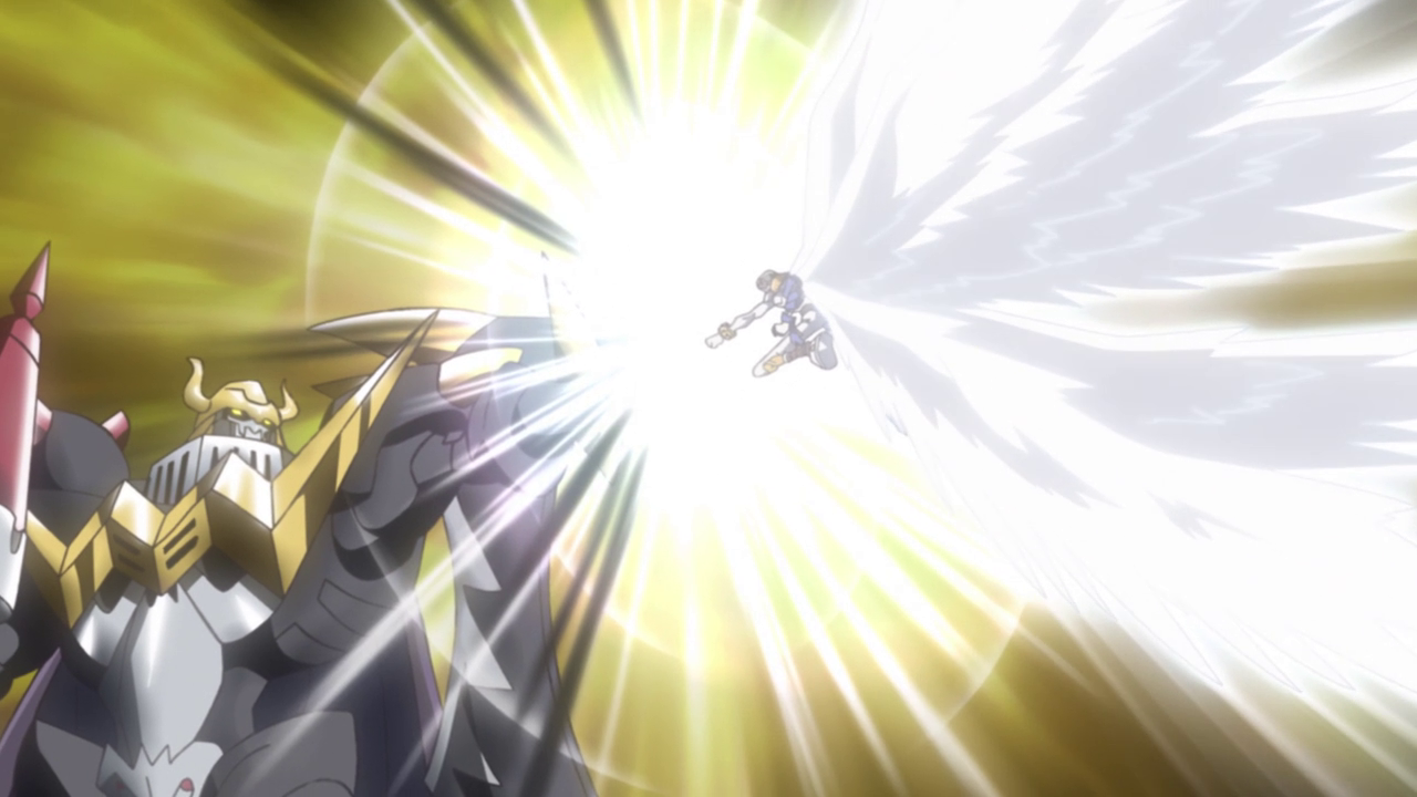I’m a bit disappointed that the Angemon vs Darkknightmon fight ended faster than I hoped without too much interesting fighting choreography. But it was nice to see Angemon’s signature move, “Hand of Fate”- excuse me, “Heaven’s Knuckle.” Now, both of those names are pretty cool, but the nostalgic “Hand of Fate” just speaks to me a bit more. Though I suppose “Heaven’s Knuckle” makes a bit more sense considering Angemon is, well, an angel.