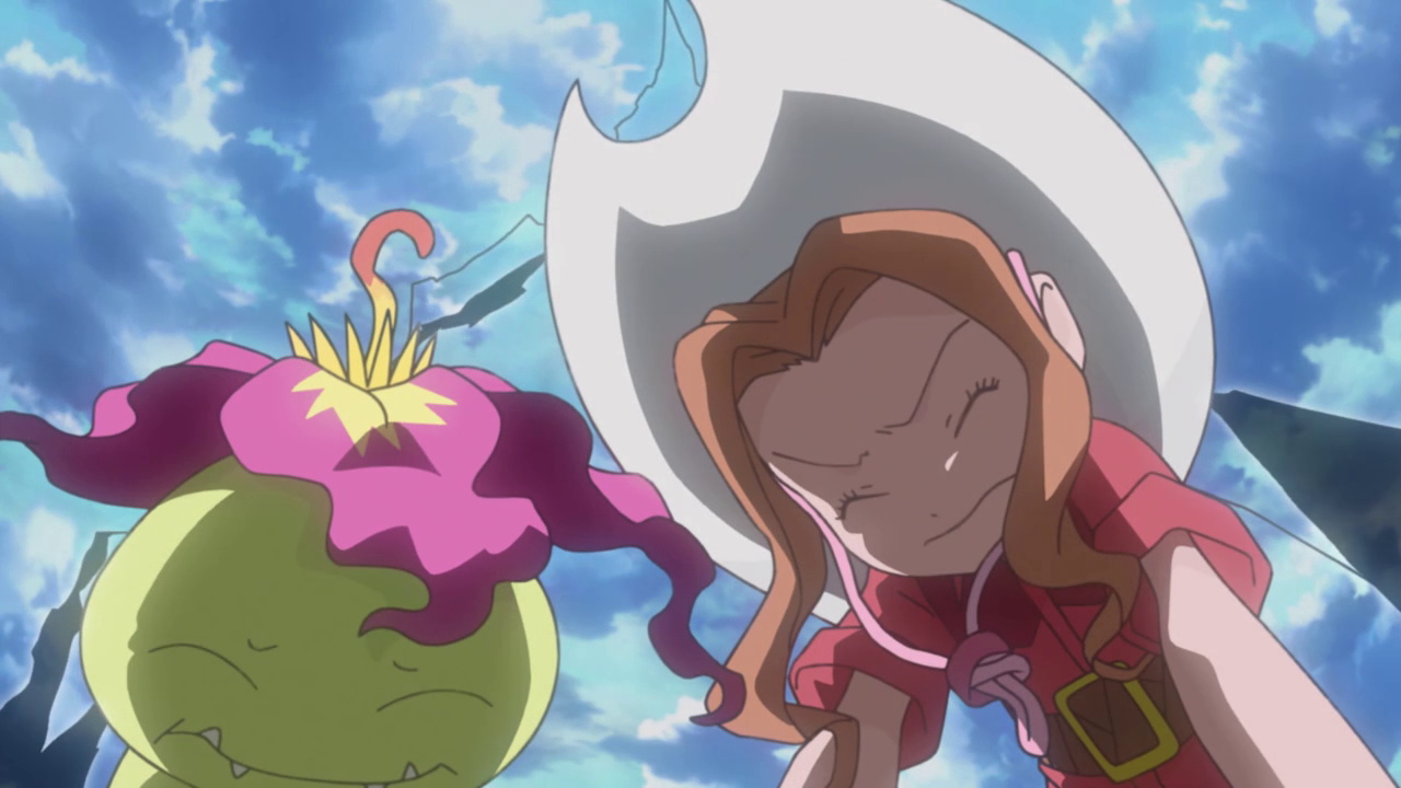 The kids end up separated in vastly different places due to Angemon flinging them to safety? I’m not sure if “safety” was the right word because they all seem to be in pretty dangerous places with some pretty aggressive Digimon. Everyone seems to be ducking in and out of danger and my hope for these poor kids to get some rest were thrown out the window. Though some of them seem to be in more danger than the others with Mimi seemingly having time to admire rocks with Palmon. NOT THE TIME GUYS. And then freaking Joe over here is soaking in a hot spring and it would have annoyed me if not for… Nanimon. I don’t know about everyone, but I’m not ashamed to say that Nanimon unsettles me. His name even has “what” in it. The one that makes me the most anxious is Takeru just roaming around with a tired out Patamon, leaving this small child open to being completely obliterated or captured like he was several episodes ago.