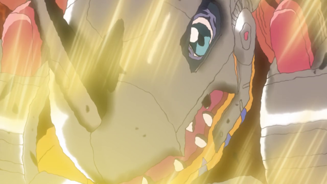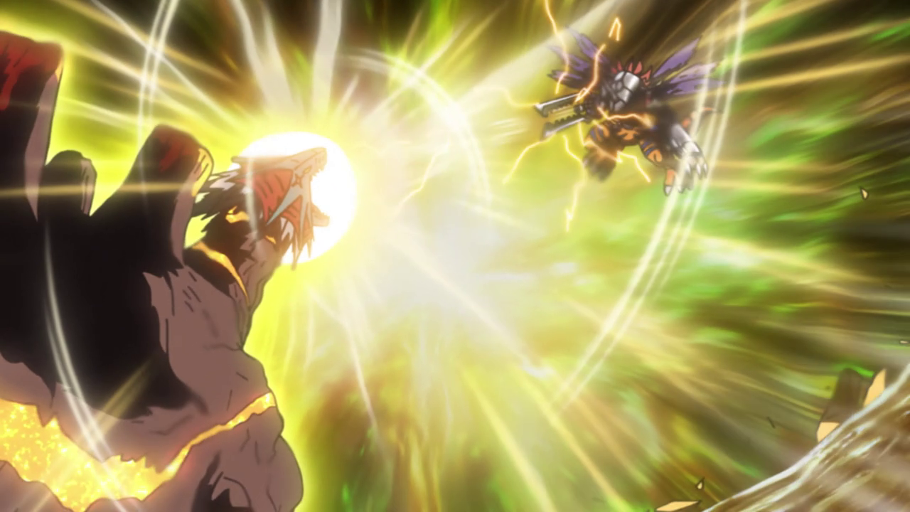 Darkknightmon just released a bunch of dark lightning, hitting a lot of Digimon in its wake, making them more aggressive and powerful. Taichi and Hikari get attacked by Volcdoramon, an ultimate level Digimon because of course it is. The battle wasn’t too interesting since we know that it would mostly just be an energy blasting battle with back and forths, Metalgreymon being overwhelmed until a sudden powerup happens. So I ended up just playing “You Say Run” in the background while the fight happened to make it a little more fun for myself. However, the moment that caught my attention was when Hikari seemed to grant Metalgreymon power, temporarily sending it to its mega form. Sheesh, they be teasing me HARD with my boy. I do appreciate that the Mega evolutions are only activated through the help of someone associated with Holy Digimon, keeping at least one thing from the original series. But because it’s only given a small amount of power, it isn’t completely realized yet. Hopefully we get to see all of my boy soon because he is probably legit my favorite Digimon.