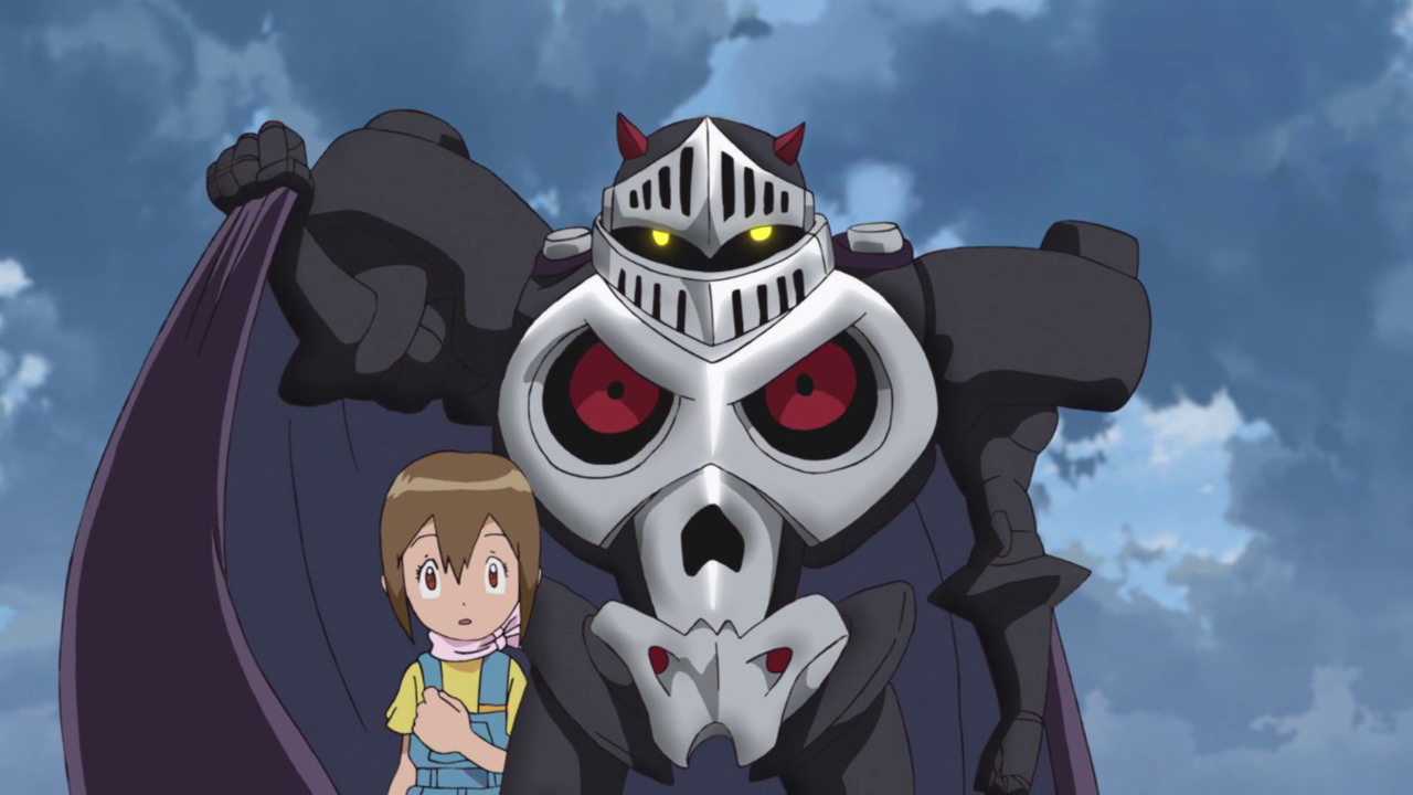 I think Skullknightmon is possibly a screwed up mutation of what was supposed to be Hikari’s partner possibly through wonky fusions and stuff. Did you see Hikari’s reaction to Darkknightmon when he looked over to her? She had that stare, and I really do believe that Darkknightmon is the one that called Hikari to the Digital World. I wouldn’t be surprised to see Skullknightmon receive the Angemon treatment, which is to expend the rest of his lifeforce and become an egg that Hikari raises into Tailmon.