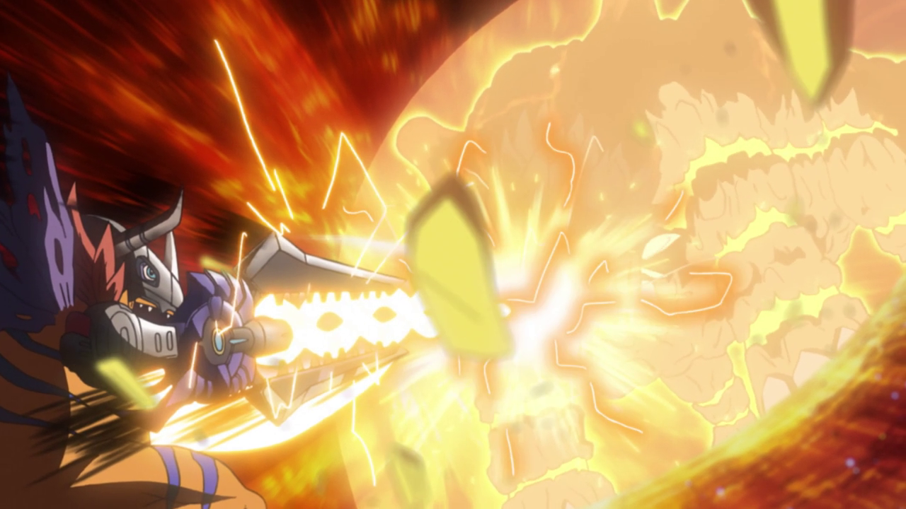 Darkknightmon just released a bunch of dark lightning, hitting a lot of Digimon in its wake, making them more aggressive and powerful. Taichi and Hikari get attacked by Volcdoramon, an ultimate level Digimon because of course it is. The battle wasn’t too interesting since we know that it would mostly just be an energy blasting battle with back and forths, Metalgreymon being overwhelmed until a sudden powerup happens. So I ended up just playing “You Say Run” in the background while the fight happened to make it a little more fun for myself. However, the moment that caught my attention was when Hikari seemed to grant Metalgreymon power, temporarily sending it to its mega form. Sheesh, they be teasing me HARD with my boy. I do appreciate that the Mega evolutions are only activated through the help of someone associated with Holy Digimon, keeping at least one thing from the original series. But because it’s only given a small amount of power, it isn’t completely realized yet. Hopefully we get to see all of my boy soon because he is probably legit my favorite Digimon.