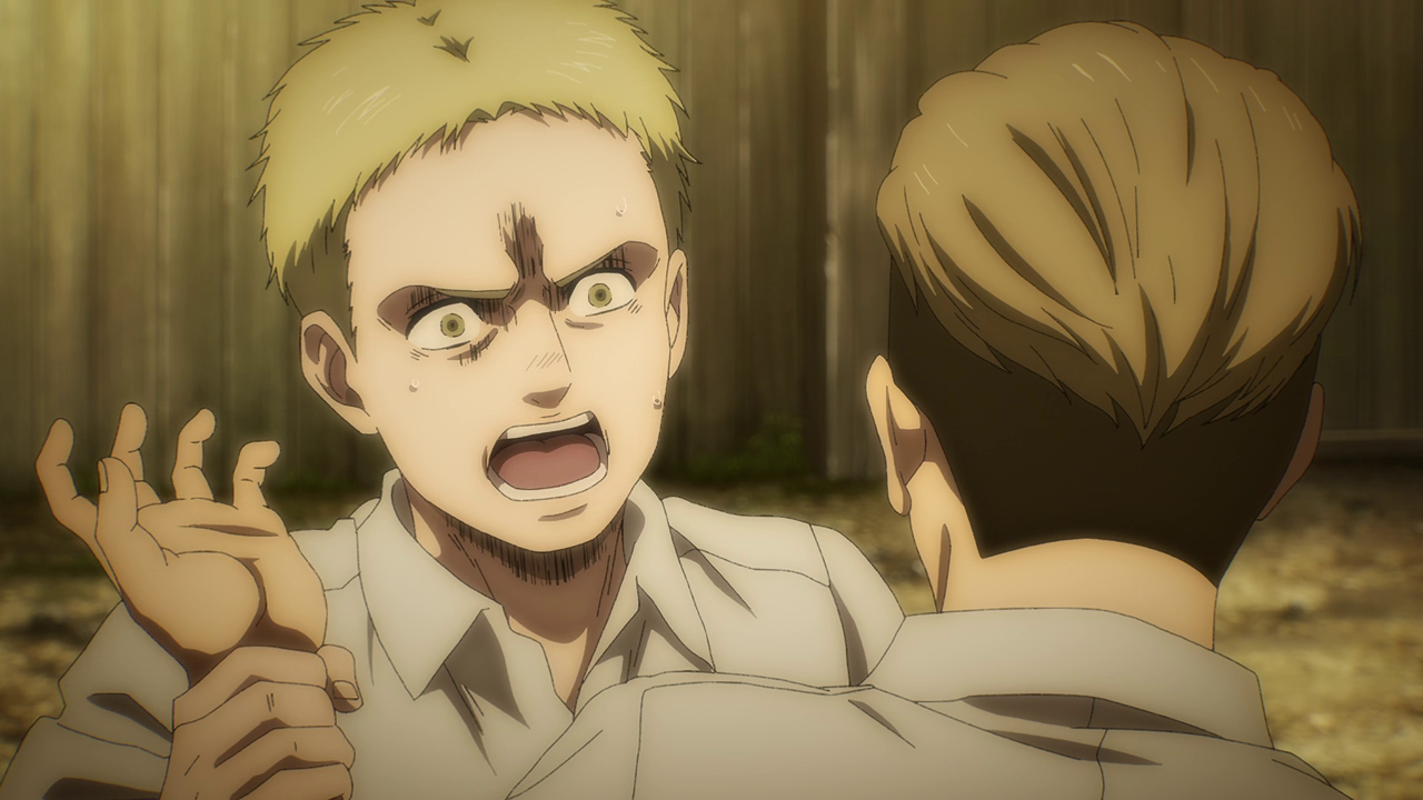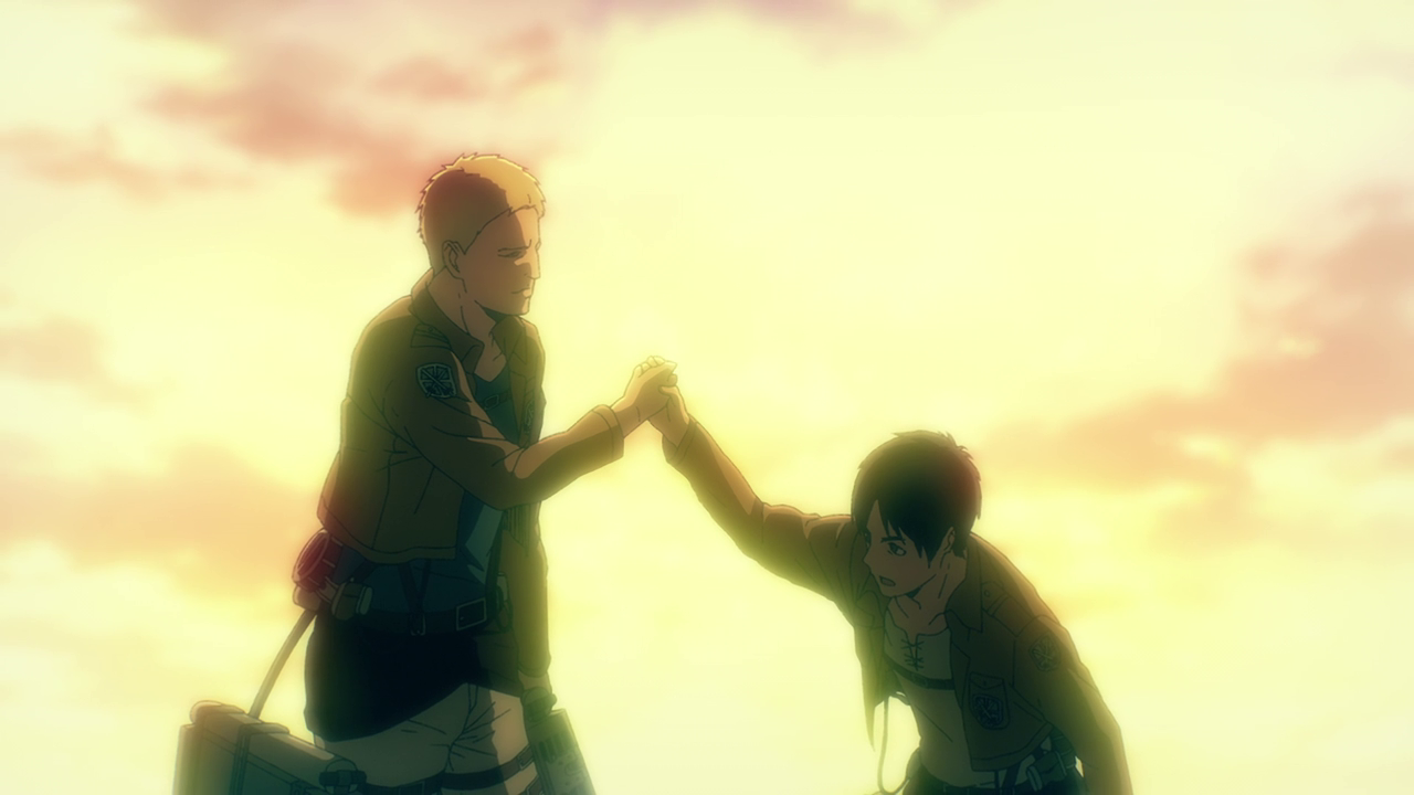 And just when things started looking up for Reiner, reality just brings him crashing back down. His mom had made it seem like her situation with his father was like Romeo and Juliet, but when he met his father on chance encounter, his father wanted absolutely nothing to do with him or his mother. Even opting to run away from the country in fear of the government finding out he had a kid with an Eldian. He was the same as all the other Marleyans who looked down on Eldians as devils. The happy family that Reiner had hoped to forge after becoming an honorary Marleyan could never be achieved. The dream that had initially driven him had crumbled right before his eyes. The manga even made it extra painful when his mom told him that his dad would have been so proud of him right after he met the guy. Why don’t you shove the dagger deeper why don’t you?