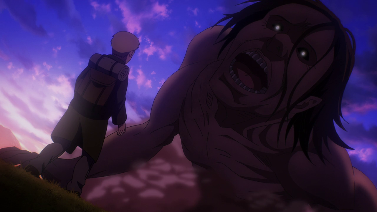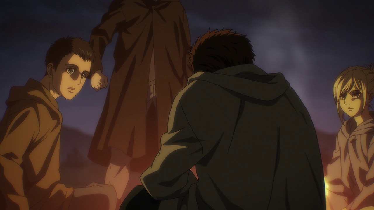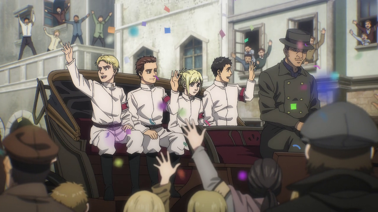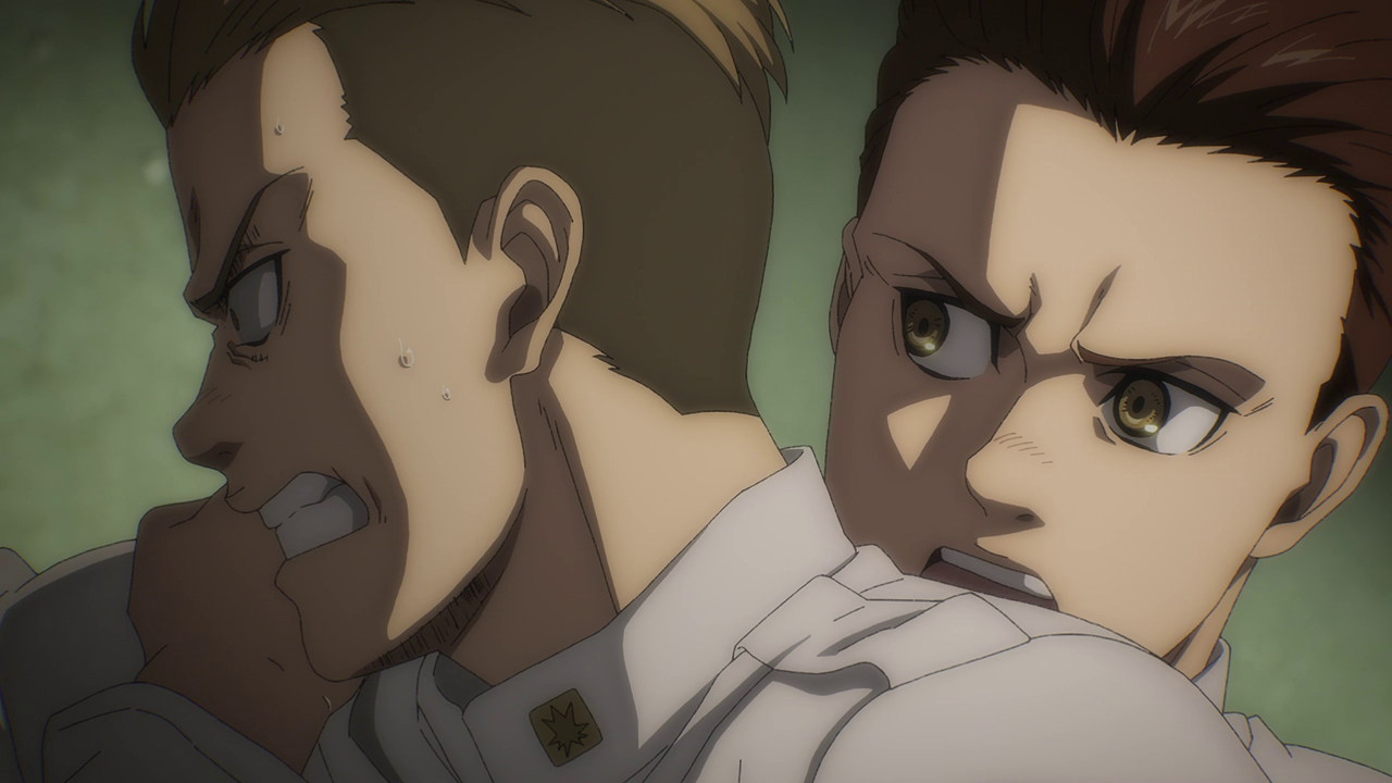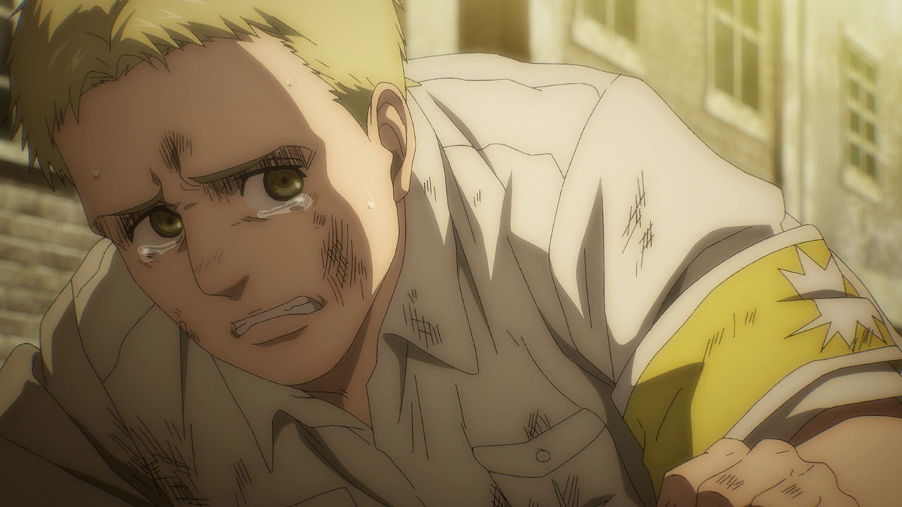 And with that, it’s official… Eren and the others have infiltrated. I remember in the manga thinking this guy was most likely Eren and I was pumped to find out that I was right. There were quite a few hints of his identity in the last episode with his silhouette watching Reiner and the other Warrior candidates, him seemingly not really distressed from the mocking “BOOM” the Marleyan soldier did and looked like he just emotionlessly fell over while also having the Eldian arm band on the wrong side. Not to mention he basically looks like a disheveled Grisha. I also had a strong feeling that guy at the end of episode 1 was Jean, but I wasn’t sure since there is another character that looked similar. But at this point, it’s 100% that it was. They honestly did a great job covering up who it was. The fact that the people from Paradis have infiltrated Marley feels very reminiscent of what the Warrior Trio did. It’s almost like history is repeating itself. And if you’ve seen the trailer… you know stuff is about to go down.