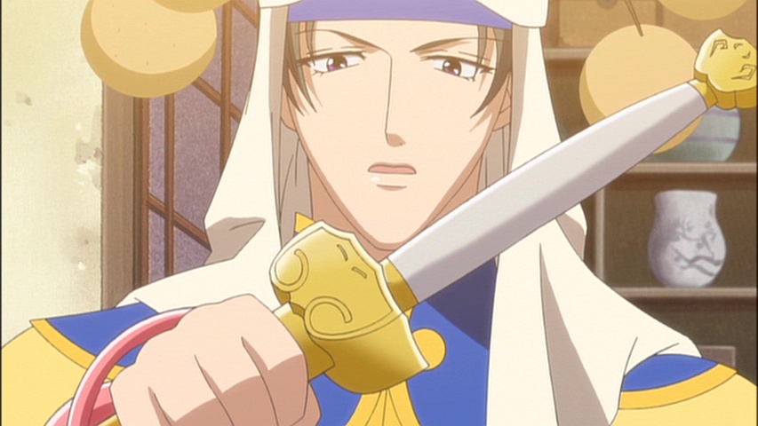 Ryuuren and Shuurei find each other in Kinka, but when he tries to give her the governor’s seal and charm, she asks him to take them to Eigetsu. Ryuuren knew that Eigetsu and Kourin had been captured and taken somewhere secure, so Ryuuren’s been following them. Shuurei also asks Ryuuren to check the pawnshop for something important, which turns out to be Seiran’s royal sword.