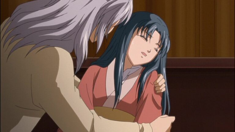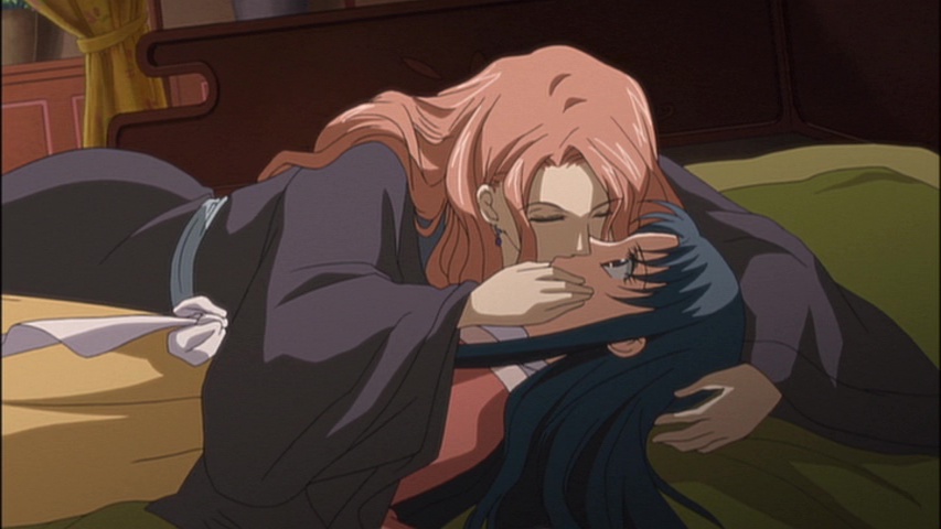 Shuurei is embarrassed that she never even suspected Sakujun at all; he on the other hand could’ve killed her at any point. But he admits a growing emotional attachment to her. Sakujun is fairly clearly a psychopath, and it’s weird watching someone who can so callously murder his older brother try to figure out whether what he is feeling for Shuurei is actually love. Psychopaths don’t understand love, which explains Sakujun’s confusion. He tells Shuurei that he killed his older brother so that he would be next in line for the position of head of the Sa family. Once he had that role then he could be in the appropriate position to take Shuurei as his wife; anything less would cause the Kou family to revolt.