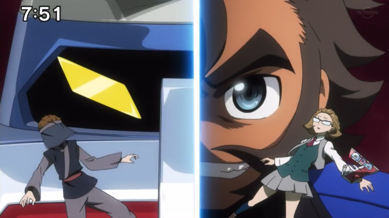 The plan of meeting up with Yuuga’s group also didn’t work out for Ranze and Rinnosuke after they stumbled upon 6th Elementary 6th Grader Chief of Staff of the Machine Cavalry Duel Club Tazaki Galient.