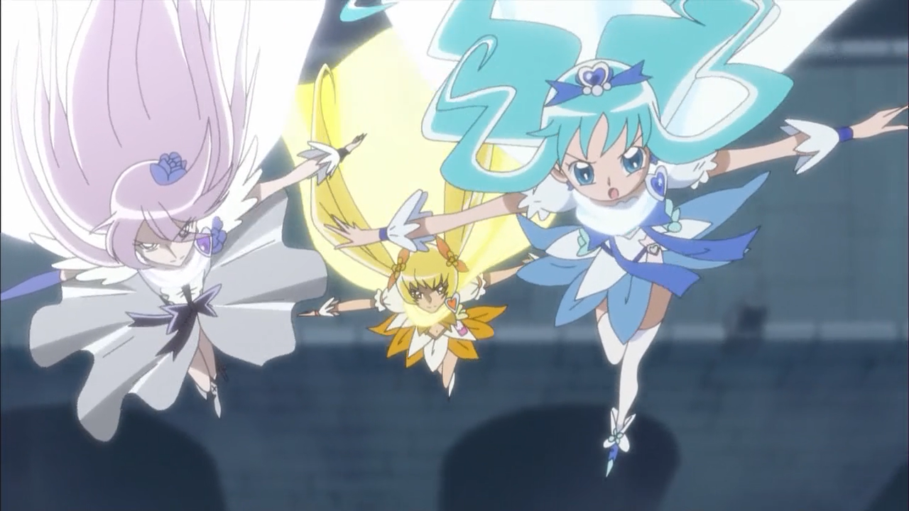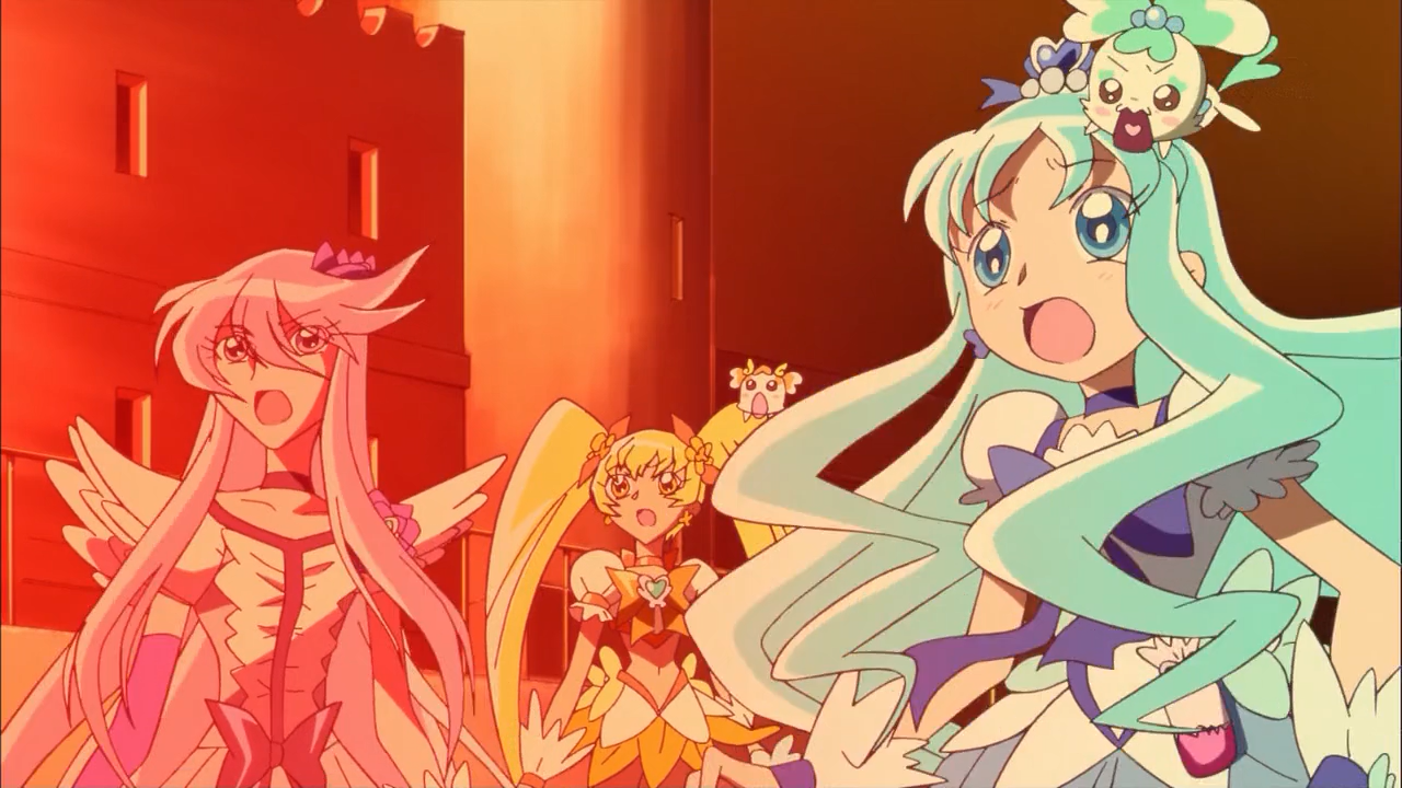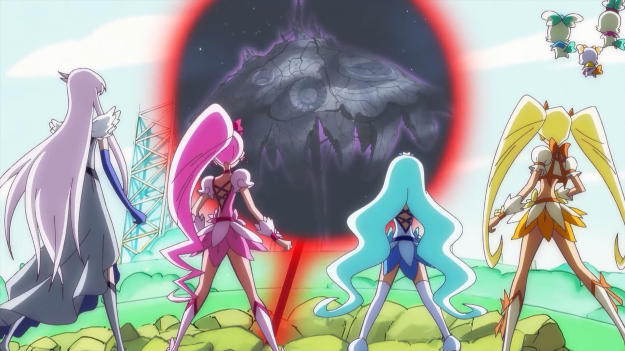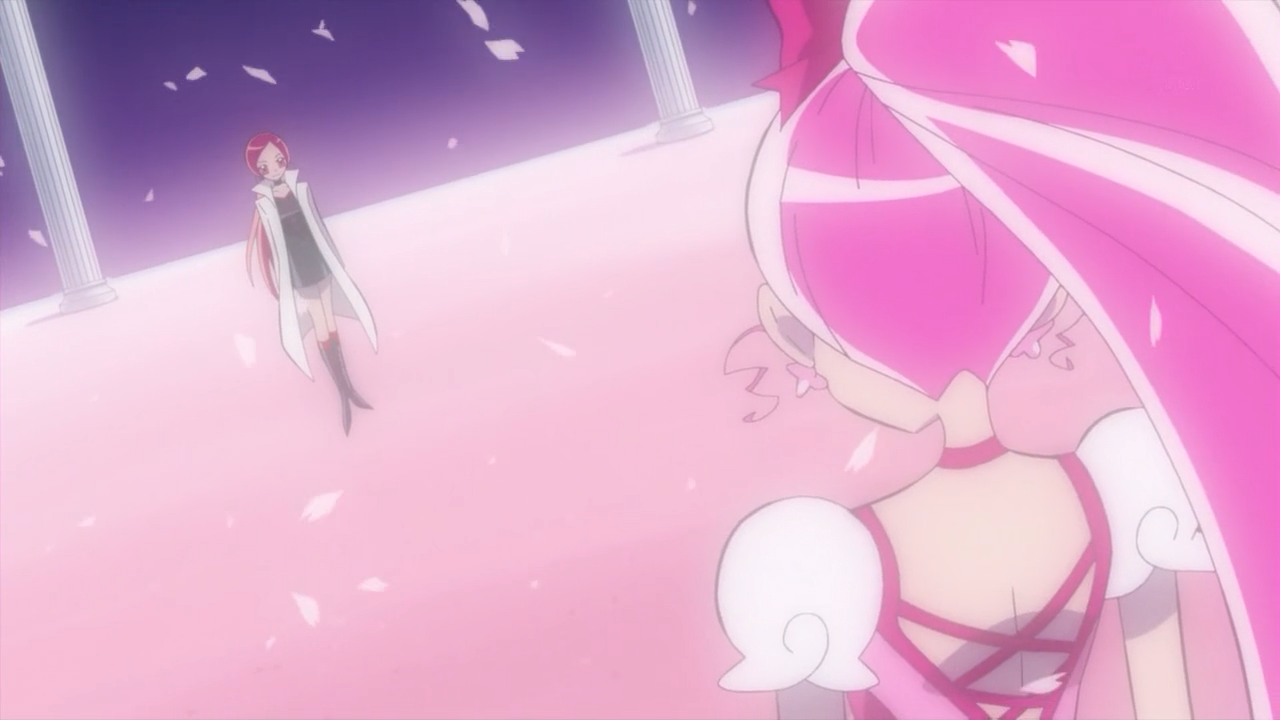At last it’s time to set the stage for the final fight. Dune, the Emperor of the Desert had quite a showy encounter by making a special delivery to give them just a taste of the Desert Seed/Desert Devil that’s coming. In order to prepare themselves to stop this thing, the girls returned to the Precure Palace to take the final test, to fight the shadows of their former selves. The challenge is about accepting all of their flaws, even if it isn’t exactly who they want to be, and serves as a reflection just how far they have come since their journey has began.