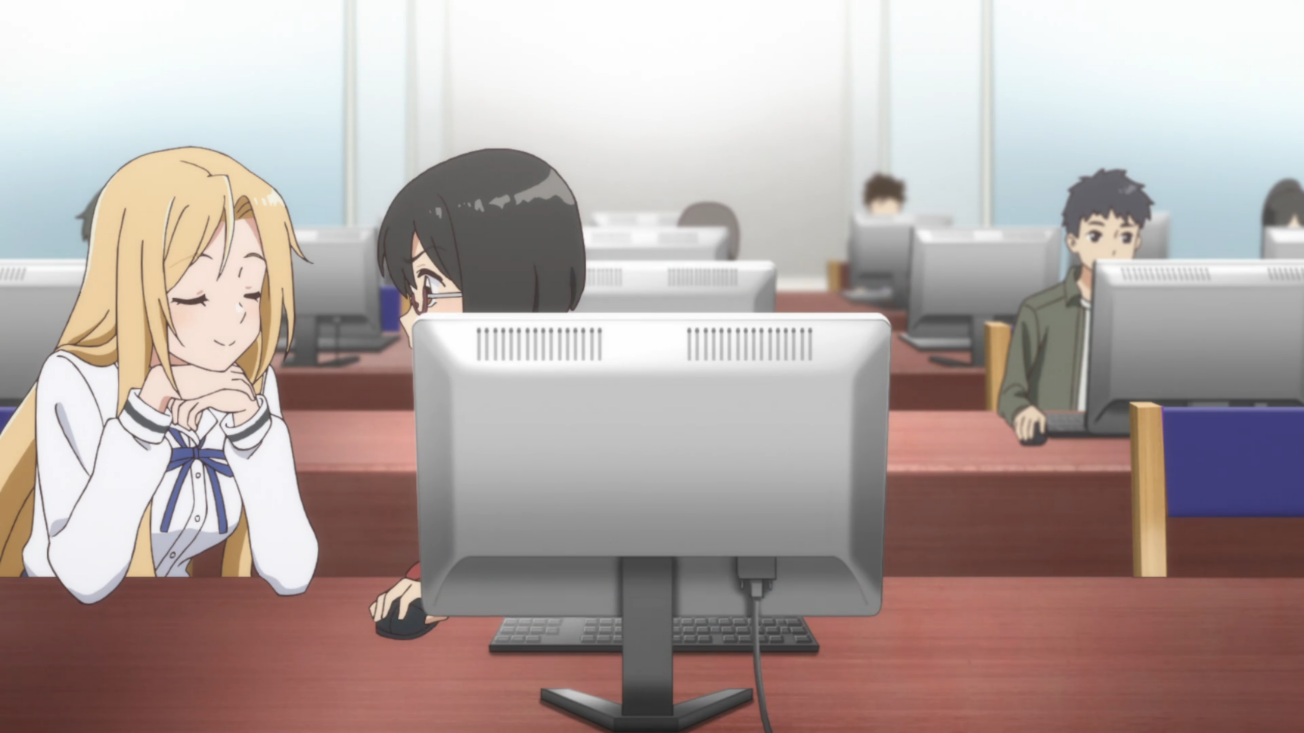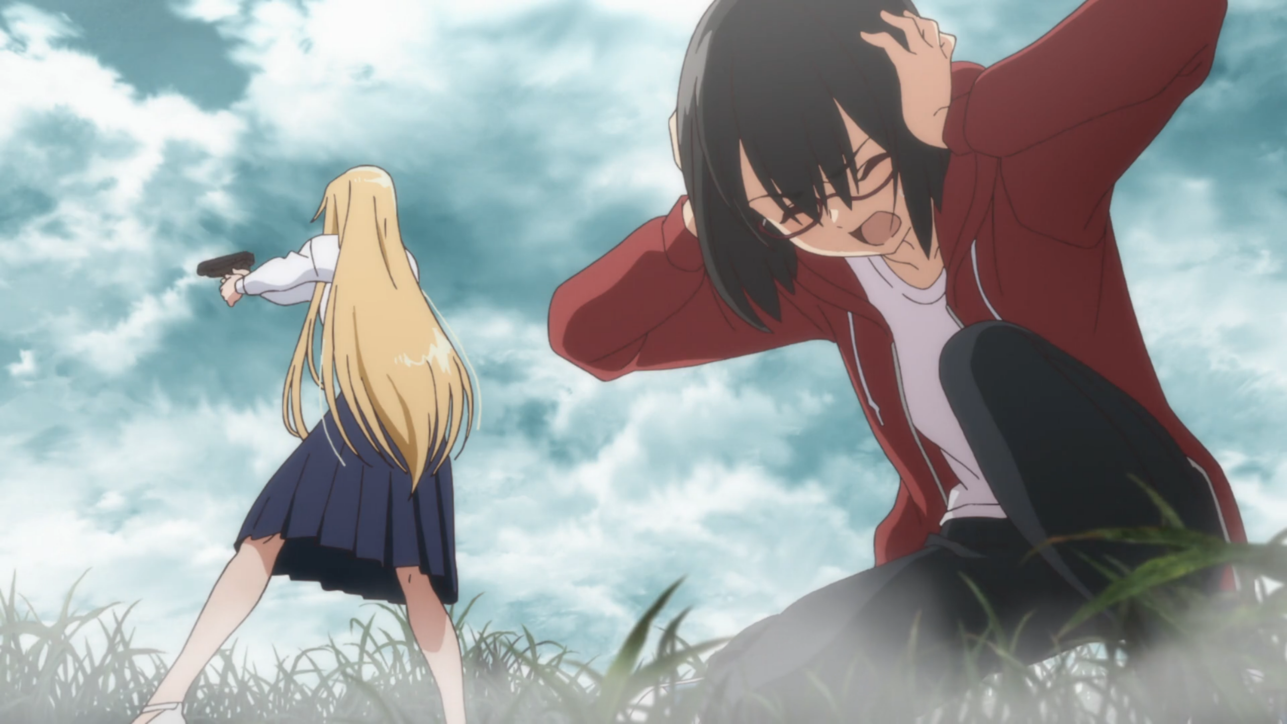 This episode really felt like they wanted to lay everything out on the table from the get-go. Here’s the wiggle-waggle, our characters, the concept of another world, and some various other tidbits of information. But none of it had the chance to be fleshed out so it felt really fast paced. My hope is that since this was the first episode, they wanted to get some of the smaller bits out of the way in order to have enough room for the bulk of the story. Overall, I had a hard time trying to figure out what the Otherworld was and when we were actually in it, especially in the beginning when they hid in the room. But how did Sorao make her way to the Otherworld? We eventually learned how Toriko used the elevator to get there, but how and why were we there in the first place? Of course, it’s only the first episode so I don’t want to judge it too harshly. But if it does keep up, I could see myself dropping in the next few episodes. Another wonky part of the episode was the switches to CGI? It’s a little bit startling when it happens, but as the episode progressed, I didn’t mind that too much. They mostly used it for zoomed out shots of the girls walking. I wouldn’t say it would make or break the series, but it definitely caught me off guard a few times.
