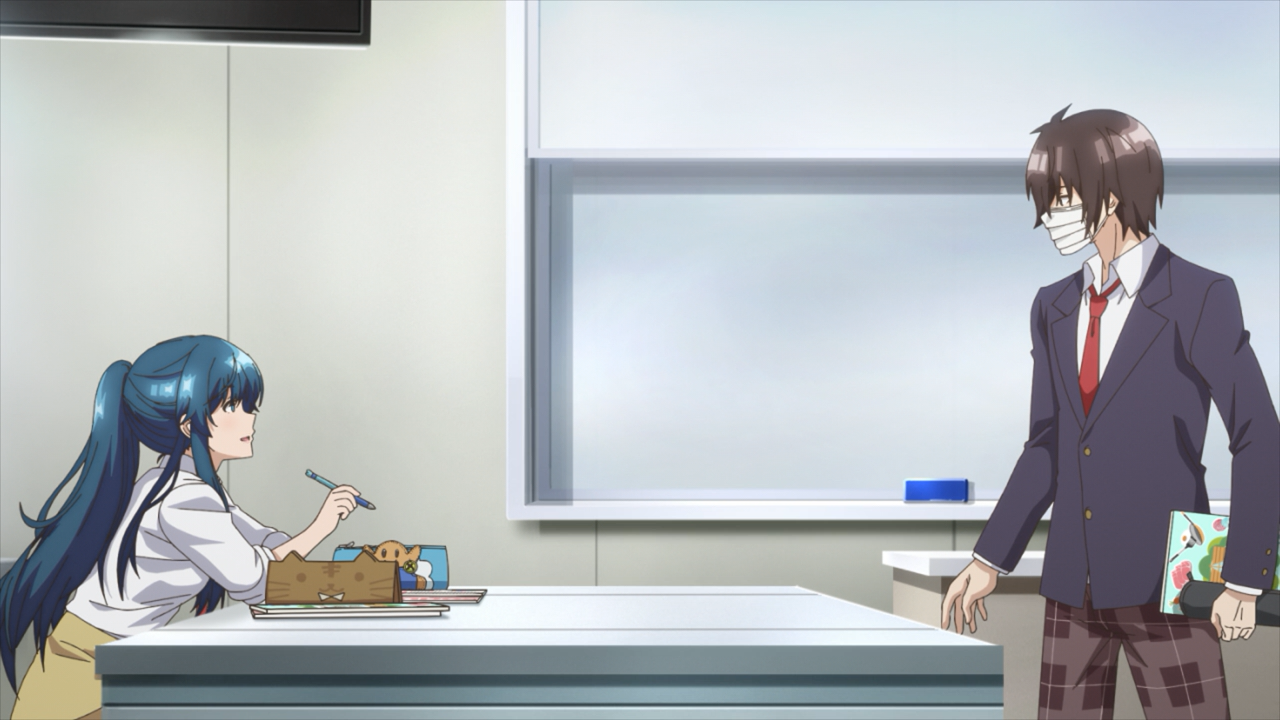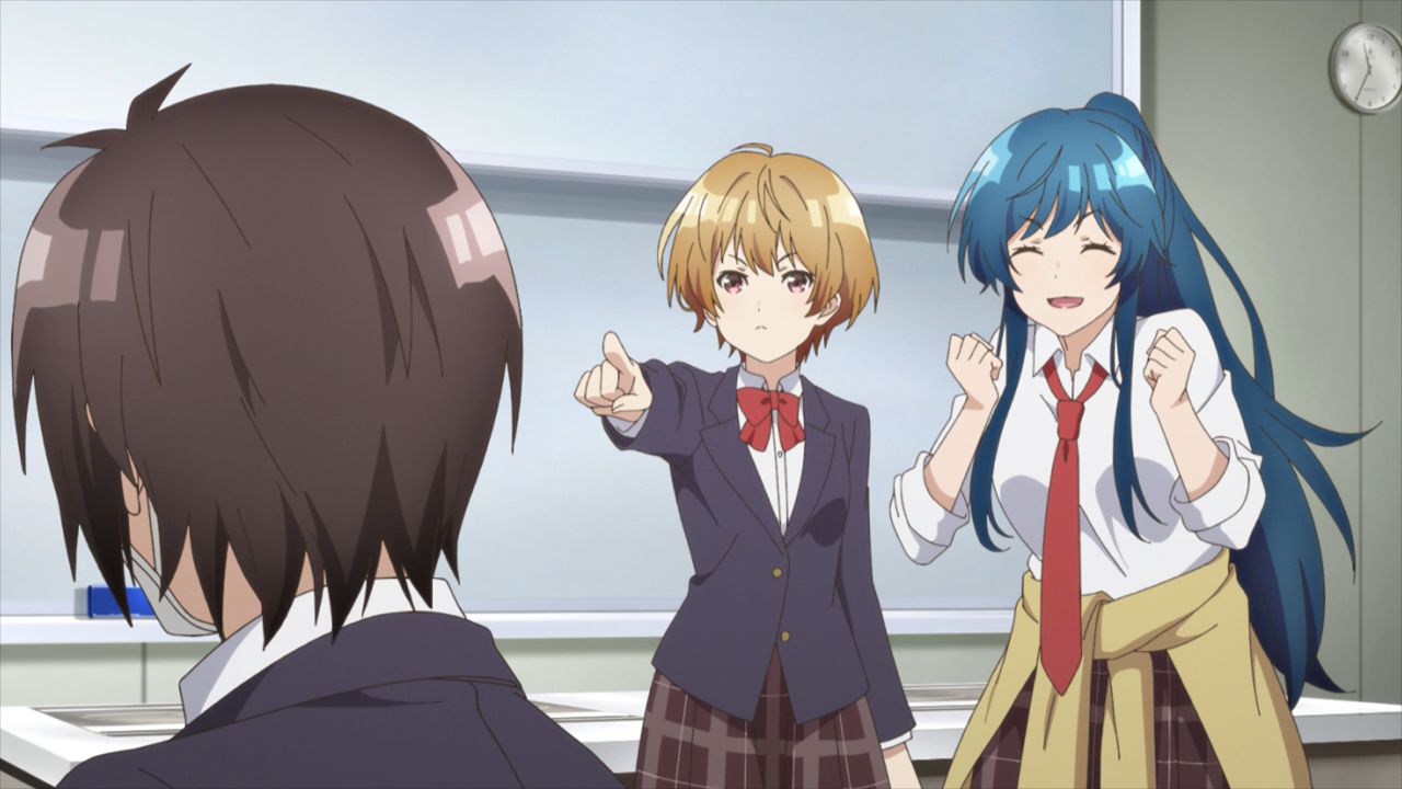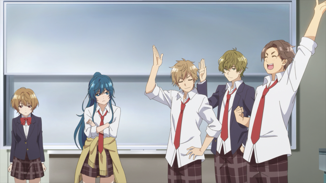 The second thing she did, (which I thought was very wise of her) was recommending that he starts by having these conversations with the girls while she is within the same proximity. This gives him a bit of a safety net in case things something were to happen, such as a troublesome person like Shuji joining the conversation. Shuji in particular is a problem because he is still salty about losing to Fuumiya, so much so that people are tiptoeing around the topic. He is the type who can take control of the flow, and could turn the topic into ammo. And because he is the key member of the class, by being rude/picking on Fuumiya could spell trouble and jeopardize this whole mission of boosting Fuumiya’s self-esteem. That’s why Aoi had to intervene the way she did, by boldly call him out on it in front of everyone, and even baited him into having to challenge Fuumiya again in Tackfam.