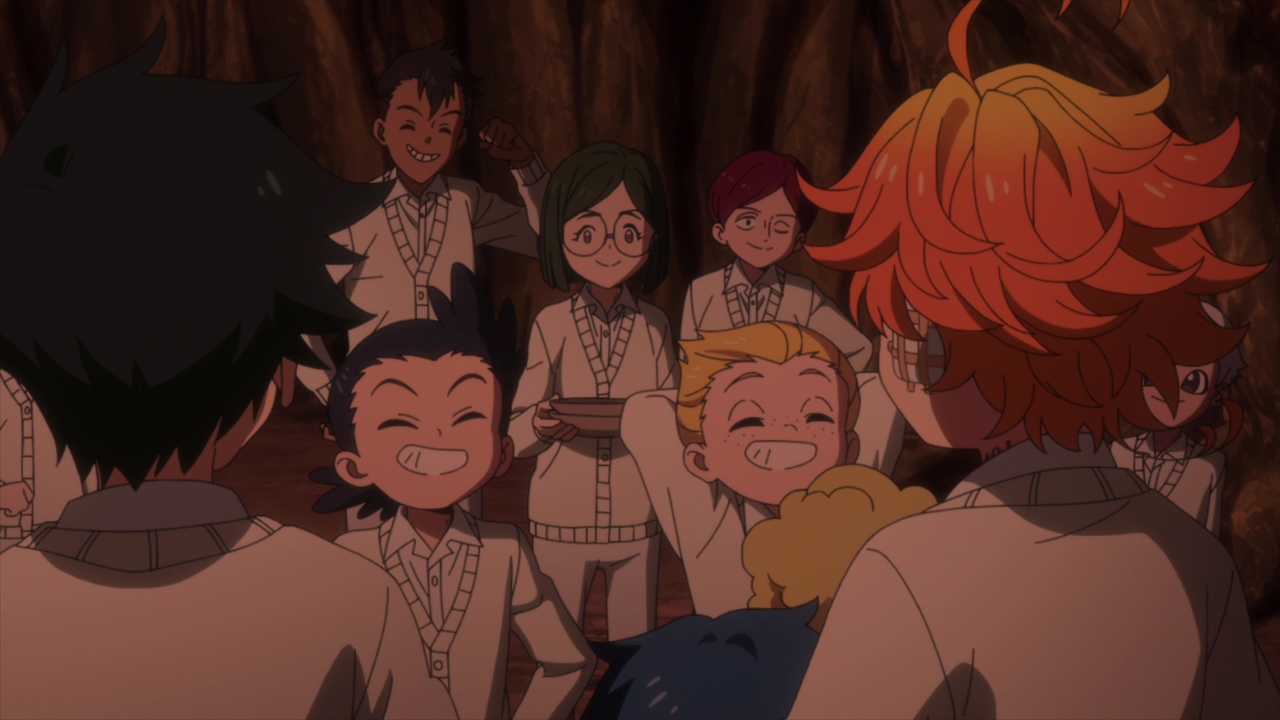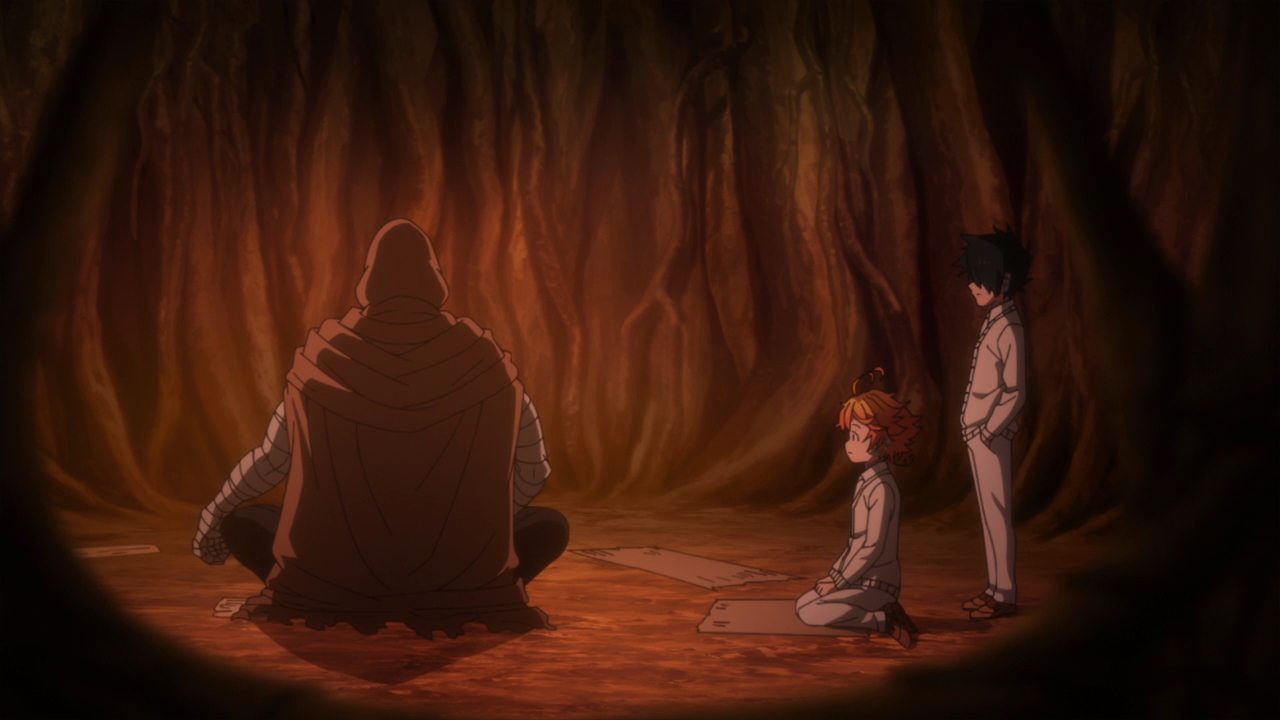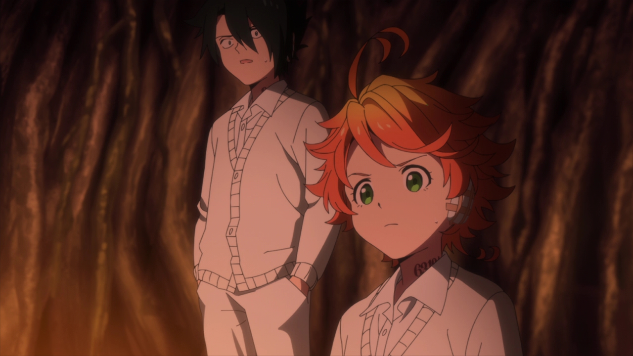 So for much longer than they thought, human farms have existed for 1000 years. We learn much more about this world, starting with that there is a part of the world where humans live in peace, and another side only for the demons. The two groups used to live side by side before things turned violent. They finally came to an agreement to live apart from each other, and to make sure the demons won’t attack them again, humans left behind some of their own for them to be bred and farmed. Which is…honestly so horrible to think about. Grace Field is the best of the best, but there’s still plenty of other farms out there. Here I thought that Emma and Ray would be a little discouraged, but it actually made them even more confident. They’ll look at any piece of hope and latch onto it with dear life, which makes me both happy and sad. This is great and all that there’s a safe human area, but Sonju mentions that no one has ever gone back and forth between the threshold. And…we can’t even be sure if this human-only area still exists after all this time, and it’s not like they even know where it is. So there’s still so much uncertainty and I would have expected them to keep this in mind and maybe even question it too, but Emma made such a grandiose speech so we’ll have to see what’ll happen.