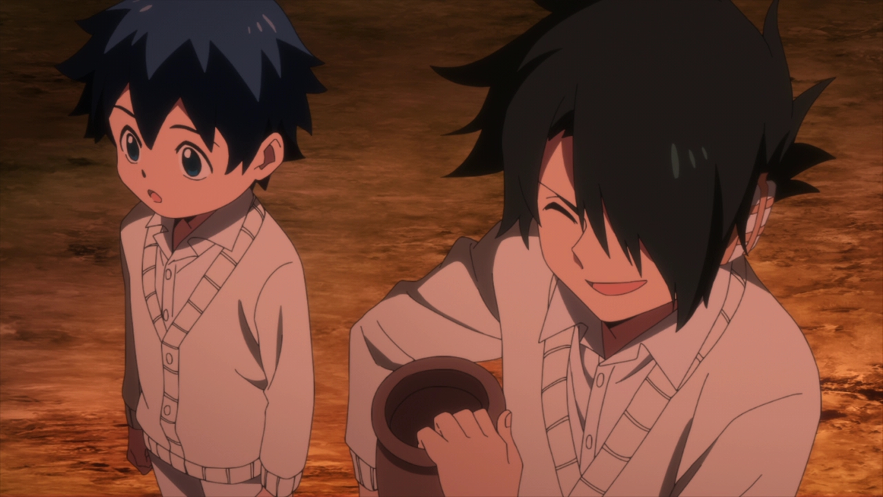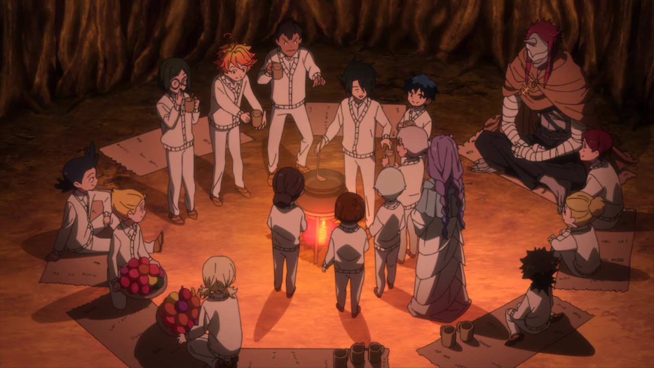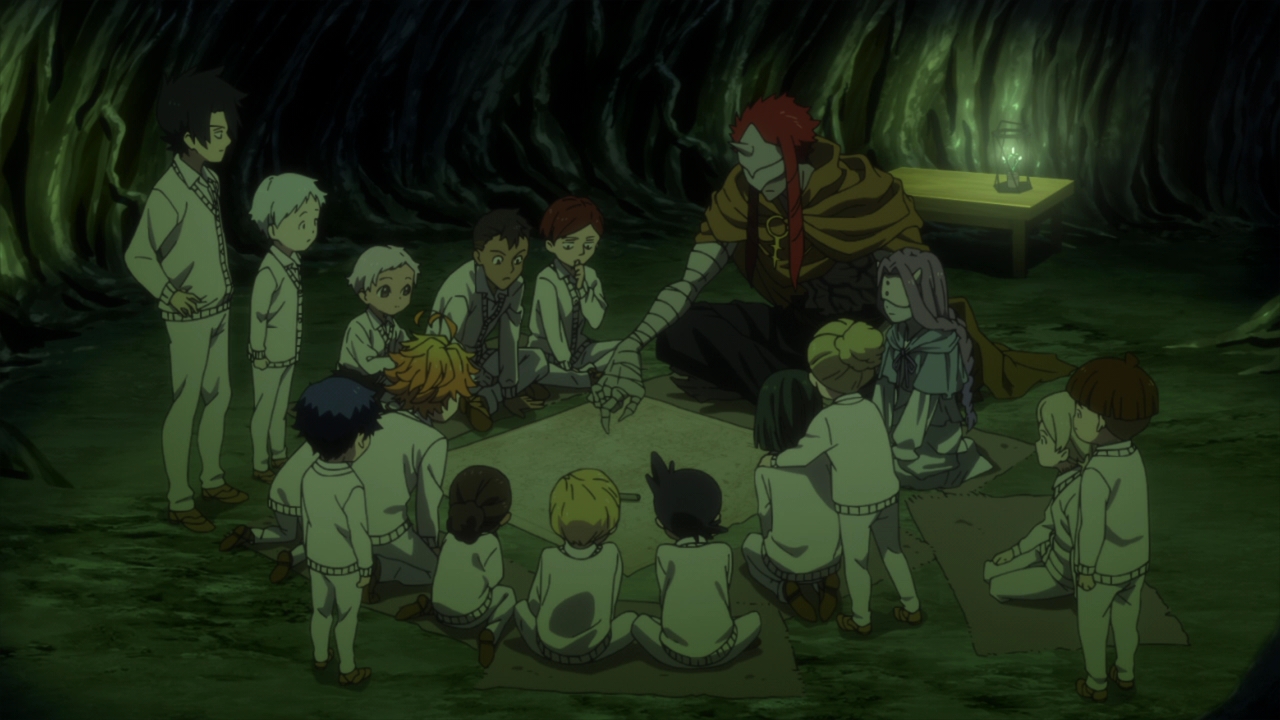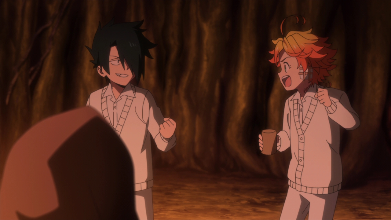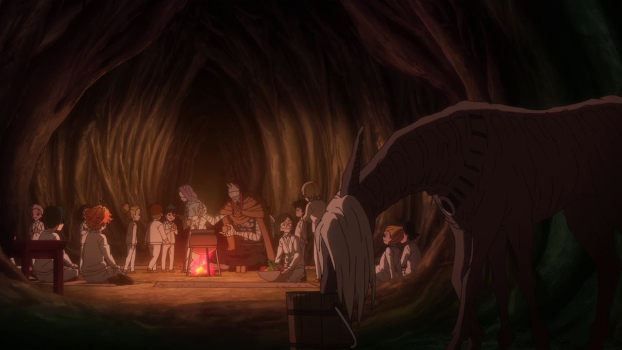 Both Sonju and Mujika seem like friendly individuals, helping the children out with survival aspects such as showing which fauna to look out for, how to make a map, shoot arrows, and cook. I didn’t feel anything strange from them, such as them maybe hiding something or just being suspicious but for some reason I still can’t fully trust them. I just feel like they’re hiding something, but I don’t know what. I do like them though, especially Sonju. I don’t think he held anything back from the story he told Emma and Ray, but there’s still things to consider. I keep going back and forth so I’m not sure haha.