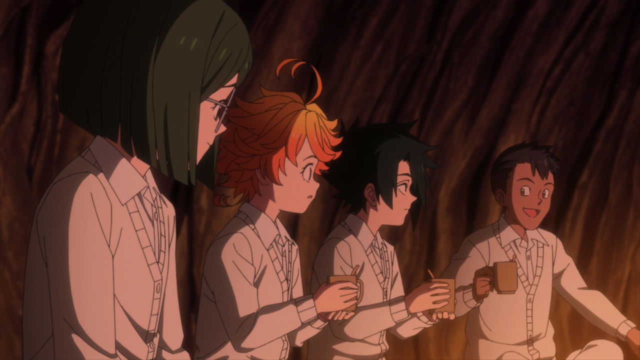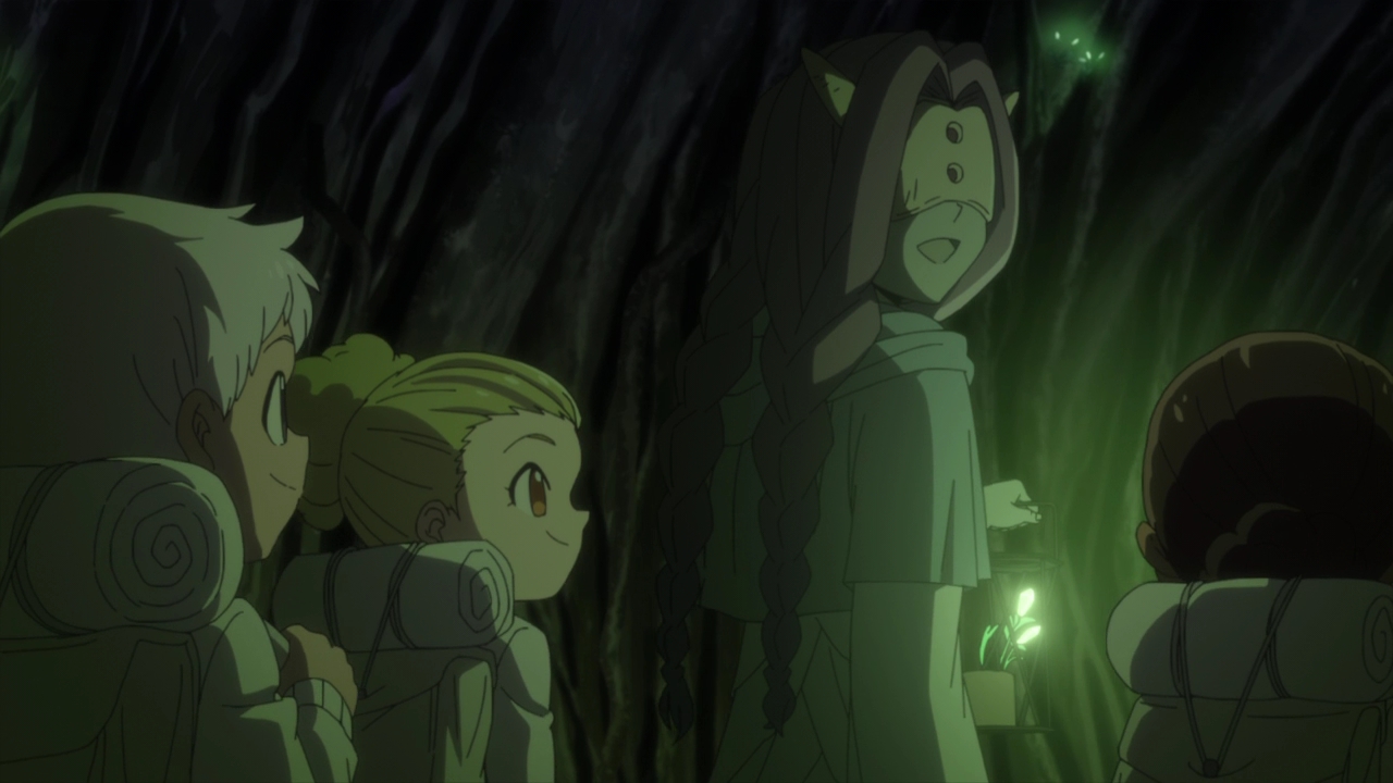 The other highlight of the episode had to be the end when Emma hunted with Sonju. My heart kind of dropped when Sonju took out the flower and instructed Emma what to do with it. It was all just so symbolic with Emma not wanting to take a life but knowing she had to for survival, but she definitely saw herself and her past siblings as the bird so I can’t even imagine how she felt when she jabbed the flower through its heart. Also, learning that the flower can only work when the prey is alive just makes it all worse. It just brings me back to that scene of her and Norman finding Conny in the first episode of last season and how horrific it was. Emma’s smile at the very end when she returns back to the group just says it all, with her trying her best to stay strong in front of everyone but there’s so much pain in that smile. It’s really heartbreaking and I feel for Emma, it’s just miserable what these poor children had to go through and what they continue to go through. What a crappy world.