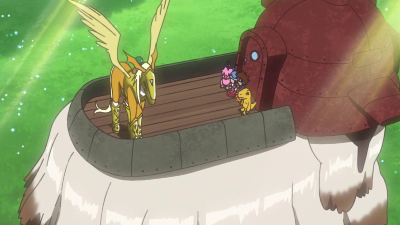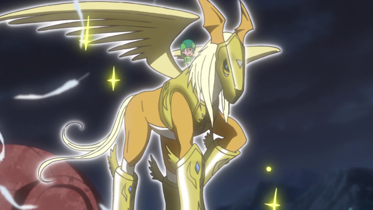 Yeah, I’m surprised at how much I liked this episode and the Takeru and Patamon pair is just so wholesome, I love it. Pegasmon doesn’t look TOO much bigger than his original appearance, but he is slightly bigger. At least he didn’t get the random growth spurt as Cerbermon who is WAY BIGGER than his original appearance.