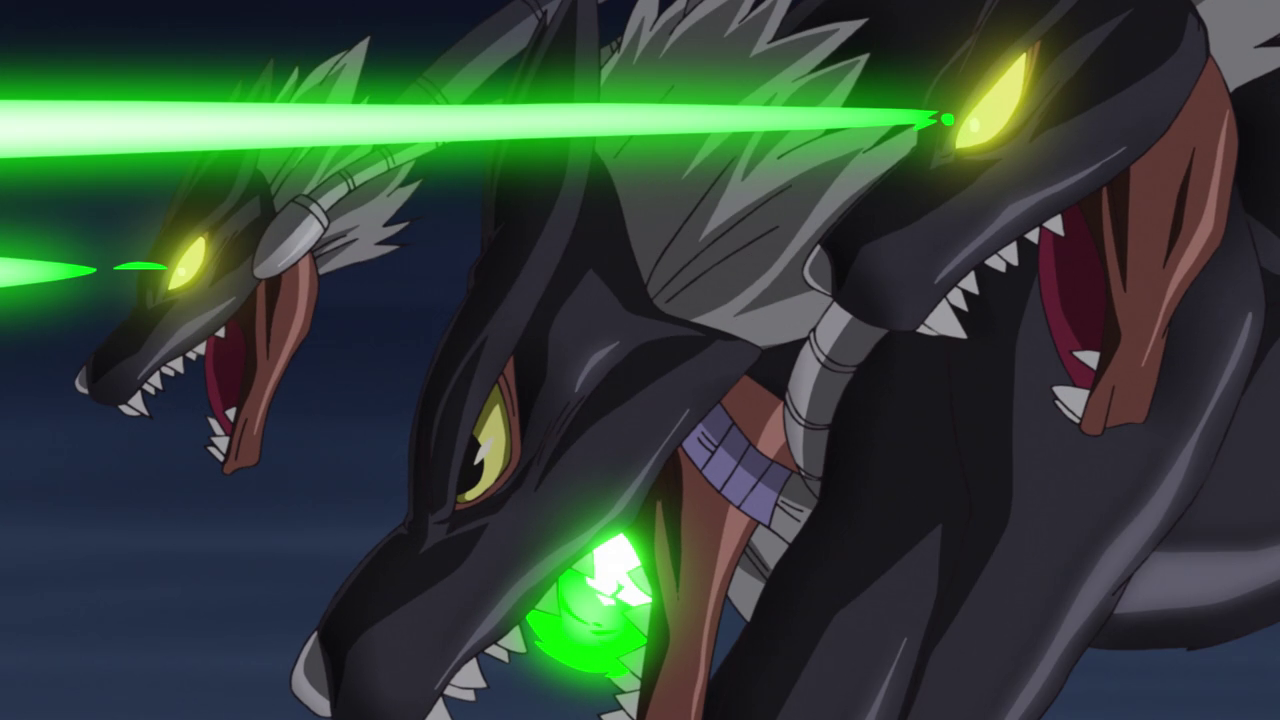 The enemy Digimon of the week is Cerberumon and man is that thing cool. I was familiar with it, but I couldn’t remember which season he appeared in. So I went looking and he apparently was the first enemy Digimon to appear in Frontier. I absolutely love this thing’s design… even if they drew him a bit derpy in this series. Which is a bit irritating. Also, why does this series feel the need to make high level Digimon ENORMOUS??? Back in Frontier, Cerbermon was probably about the size of a tiger if not a little bit bigger. But here, he’s like as big as Metalgreymon and Garudamon combined. Digimon 2020 WHY???? Bigger doesn’t necessarily mean more powerful! Stop this nonsense! You’ve already 10x enlarged Wargreymon, why are you doing it to other Digimon too???