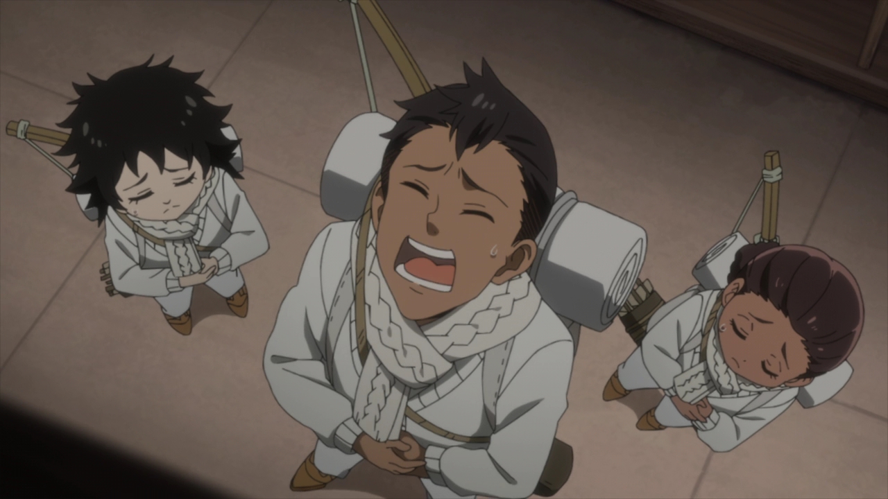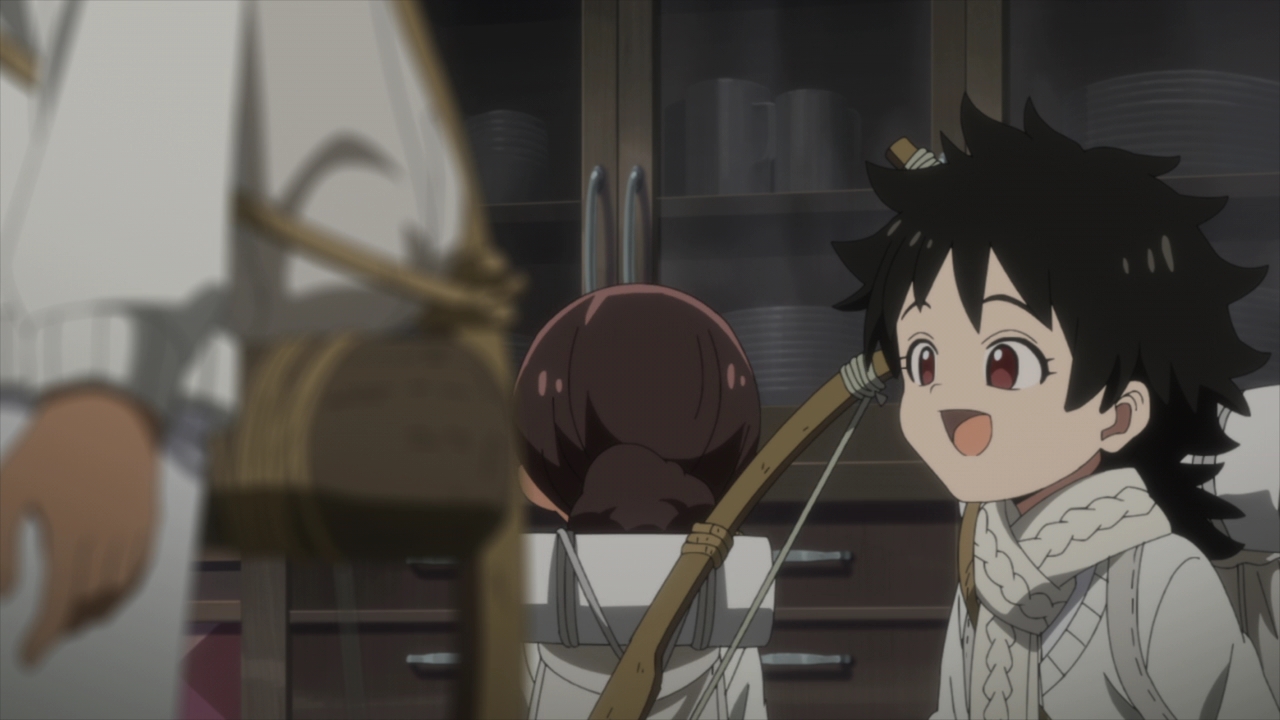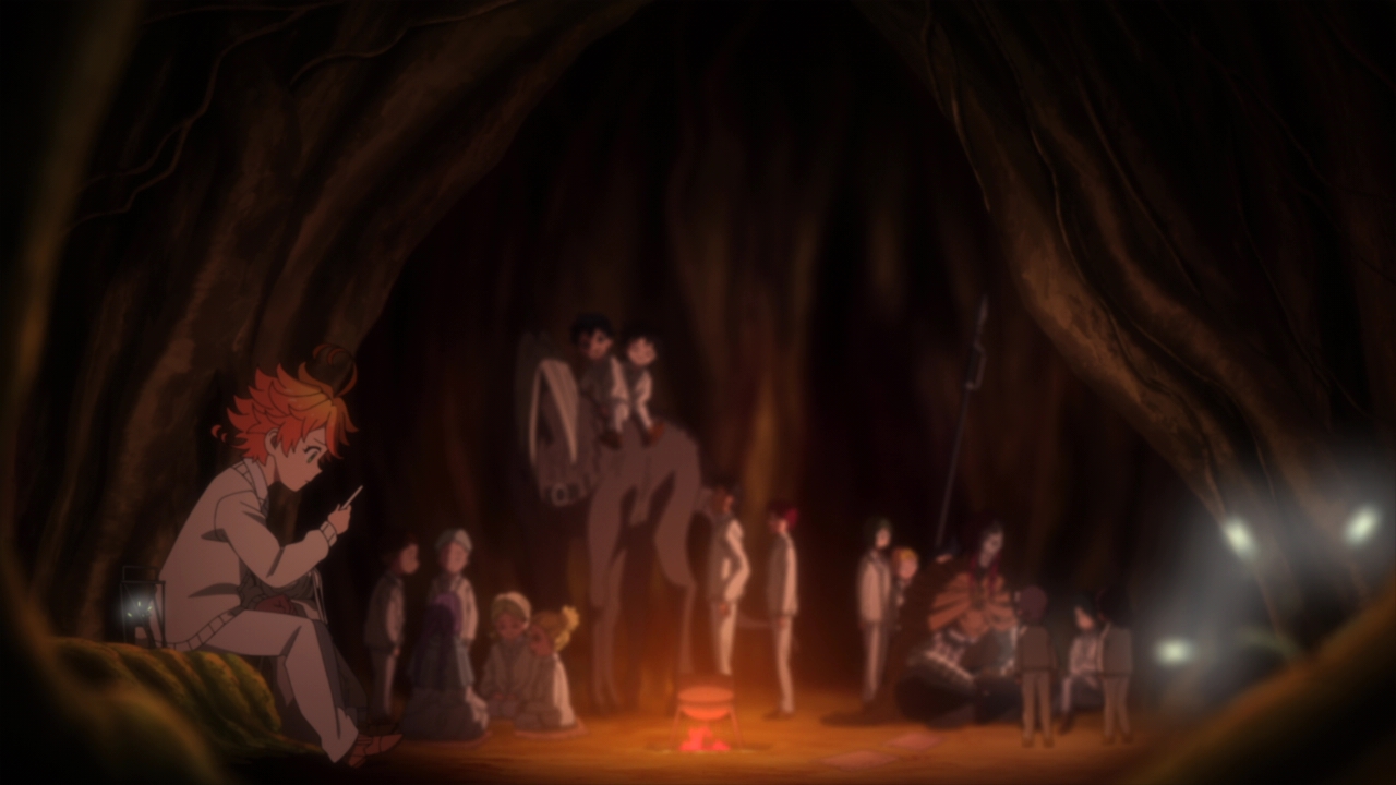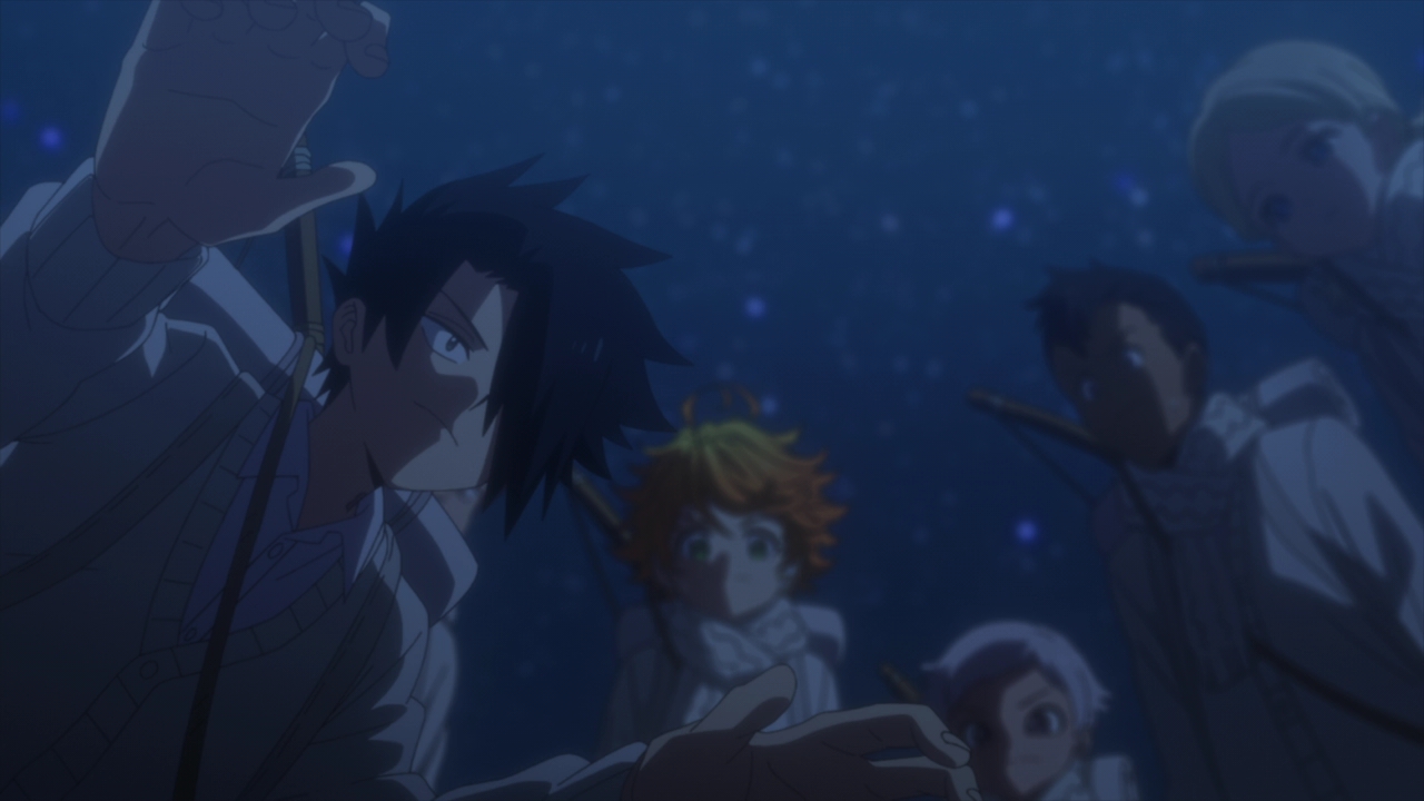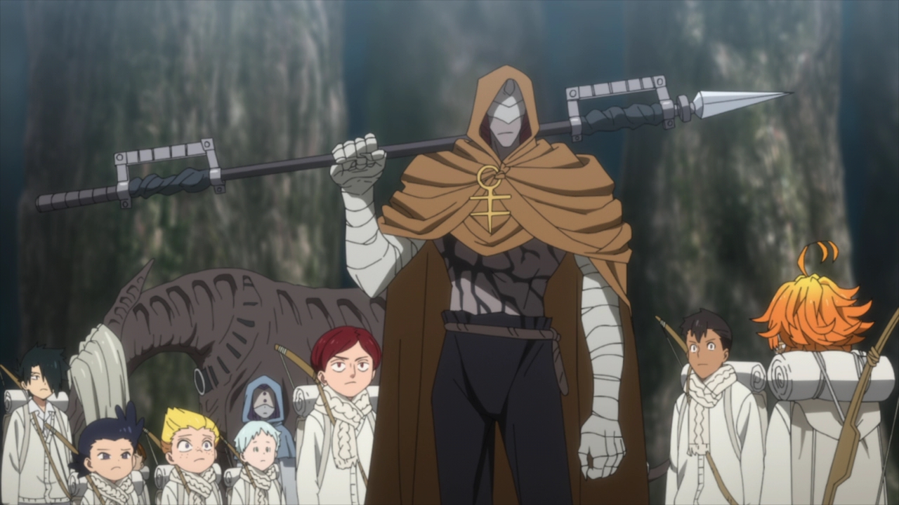 It seems that Sonju is going to continue to be helpful for the children, as we saw him take down their pursuers in the forest. On one hand it’s like, thanks I guess. But knowing his true intentions, it feels scummy and I don’t even know how to feel. He won’t touch them because their doctrine says that there’s no problem eating natural humans, not farmed ones. Emma and the others are farmed creations so they’re off limits. He’s eagerly awaiting the next generation of their offspring so he can hunt them down, and we can see he’s desperate enough for human flesh. That shot of his teeth was terrifying. Mujika doesn’t seem that way at all and doesn’t show any interest. She seemed to really share a bond with the others, with Emma. I couldn’t help but go AHHH and point at the screen when Emma said that Mujika didn’t really seem like a demon, just going back to my theory that maybe Mujika (at least) was once human. She did say that this was the first time she’s ever met and spoken with humans, but I don’t know. Still interesting to think about.