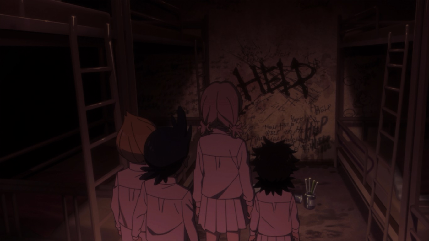 The theory for whatever this shelter is that this is probably another farm. It seemed to look a little too similar to Grace House, and that secret tunnel was just too strange. Funny that none of them even mentioned it to the others. Whoever William Minerva is, I don’t think he should be trusted. That bloody room with scratch marks and HELP written on the wall certainly isn’t good, and that one room with the phone is weird. It could be that Minerva is running his own farm for his own benefit (like his life after escaping). Considering Emma and the others come from Grace House, the best farm in terms of quality, and they were smart enough to escape and decipher the morse code that Minerva left for them, they’re probably the best in terms of meat grade. As gross as this sounds, their brains are probably mighty tasty right now. So this was probably a trap set right from the start, though it’s crazy because it’s not like kids escaped from Grace House all the time, so was this supposed farm actually viable? All I know, something bad is going to happen soon and I’m scared for these kids. It makes me wonder too, is Minerva even a human. It points that he most likely is, why else would all his stuff be in Grace Field. But honestly, who the hell knows.