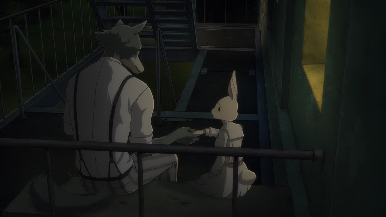 Haru and Legoshi’s relationship has gotten much more shaky, as Legoshi always had the feeling that Haru was still in love with Louis and judging by her reaction to him asking her that, it might be true. She probably has feelings for both of them, and I think Legoshi did the right thing in wanting to watch her from a distance. He’s basically accepted this and even mentioned how strangely calm he was about all this, and he can’t deny what Aoba told him (which I can agree with). It’s a little sad, but this might be for the best. Haru needs to get her feelings together, and Legoshi has other things to deal with right now. But I also think that there needs to be better communication between them, and Haru explaining her relationship with Louis might be a good step. That is, if Legoshi doesn’t get shanked at the end.