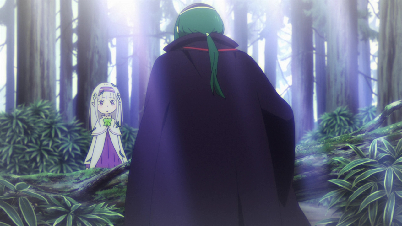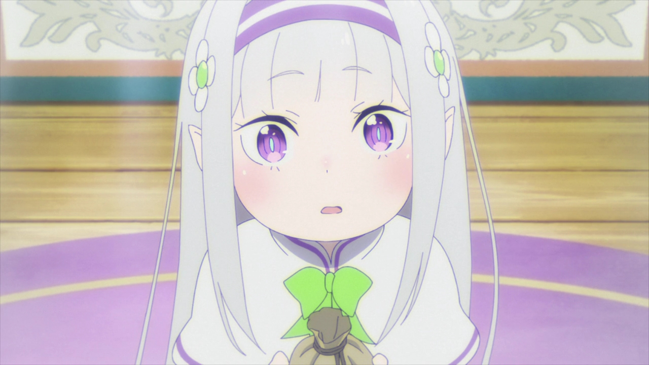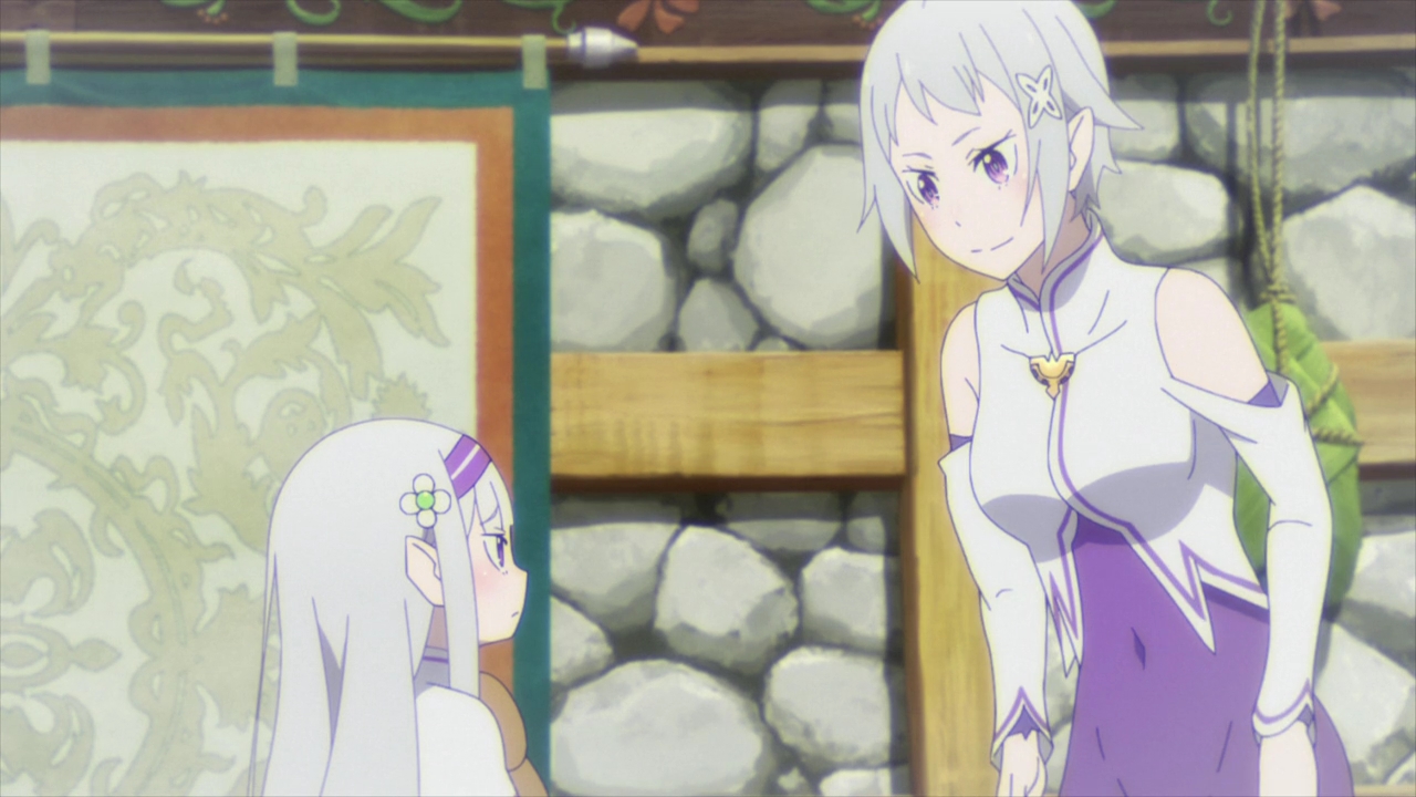 This episode was fantastic for world building, and of course giving us a lot of background for Emilia, who was an adorably rambunctious child. Emilia and Echidna’s interactions were entertaining, and I loved that even though Echidna was being petty af the whole time, Emilia just took it in stride. We finally got to meet Mother Fortuna, Emilia’s aunt and basically her foster mother, as her own parents are “too busy”. I’m not exactly sure what that means, but there’s a lot of secrets when it comes to them that’s suspicious. Thankfully Fortuna is a great person (I hope) and I do believe that she really does love Emilia, even if she’s hiding a lot. Emilia would spend most of her time alone in her princess room while Fortuna would go out and about. Just from this episode, it seems that Emilia is isolated from everyone else and the only person she interacts with is Fortuna (and eventually Geuse). Is it because she really is a princess (or that’s just a cute name for the room), or is it because she’s a half elf. Or does it have to do with this seal they kept talking about?