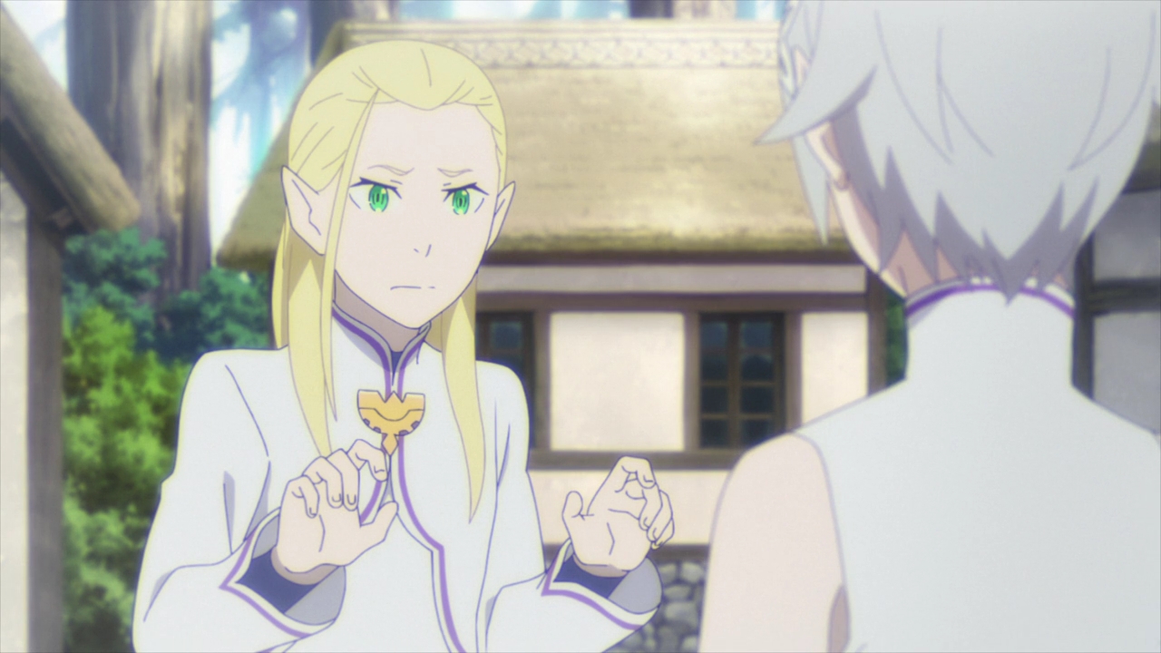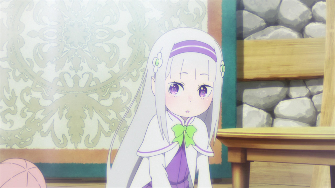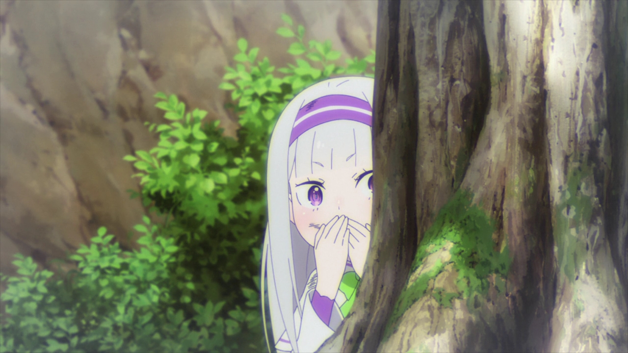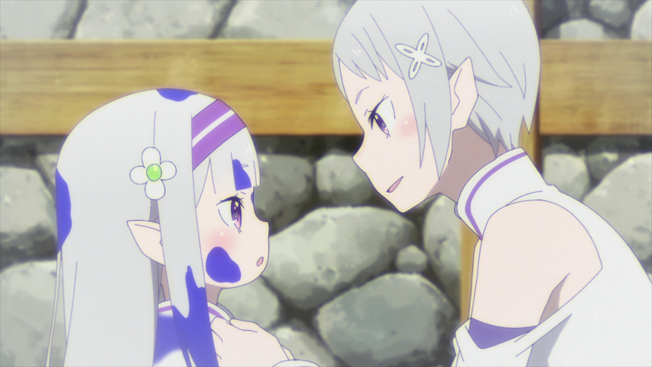 This episode was fantastic for world building, and of course giving us a lot of background for Emilia, who was an adorably rambunctious child. Emilia and Echidna’s interactions were entertaining, and I loved that even though Echidna was being petty af the whole time, Emilia just took it in stride. We finally got to meet Mother Fortuna, Emilia’s aunt and basically her foster mother, as her own parents are “too busy”. I’m not exactly sure what that means, but there’s a lot of secrets when it comes to them that’s suspicious. Thankfully Fortuna is a great person (I hope) and I do believe that she really does love Emilia, even if she’s hiding a lot. Emilia would spend most of her time alone in her princess room while Fortuna would go out and about. Just from this episode, it seems that Emilia is isolated from everyone else and the only person she interacts with is Fortuna (and eventually Geuse). Is it because she really is a princess (or that’s just a cute name for the room), or is it because she’s a half elf. Or does it have to do with this seal they kept talking about?