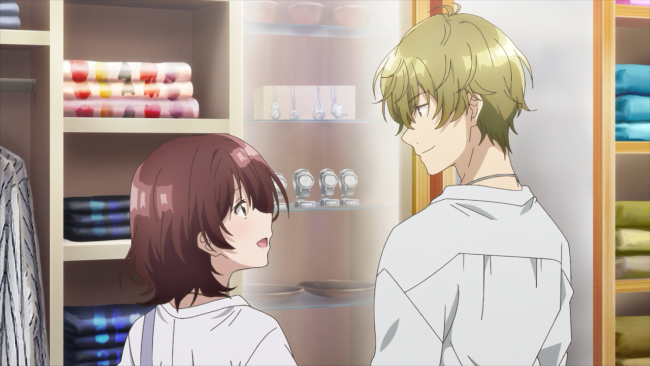 Of course it doesn’t necessarily mean it’s maliciously driven. After-all there are many reasons why people would try to get close to others, either for selfish reasons such as such taking advantage of their connections/networking, maybe they own something fun to play with, maybe they are friends with someone they like, etc… That’s why he left me with the impression that there’s more to it than just being impressed with how Fumiya dealt with Erika’s bullshit. Right now there’s too little to work with since we only got to see the Takahiro interact with Fumiya for a total of two, maybe three times if we include using him as a model to demonstrate the hair products they were looking at. (That was pretty cute though!) But hey if he’s a super nice guy, then that’s a great thing!