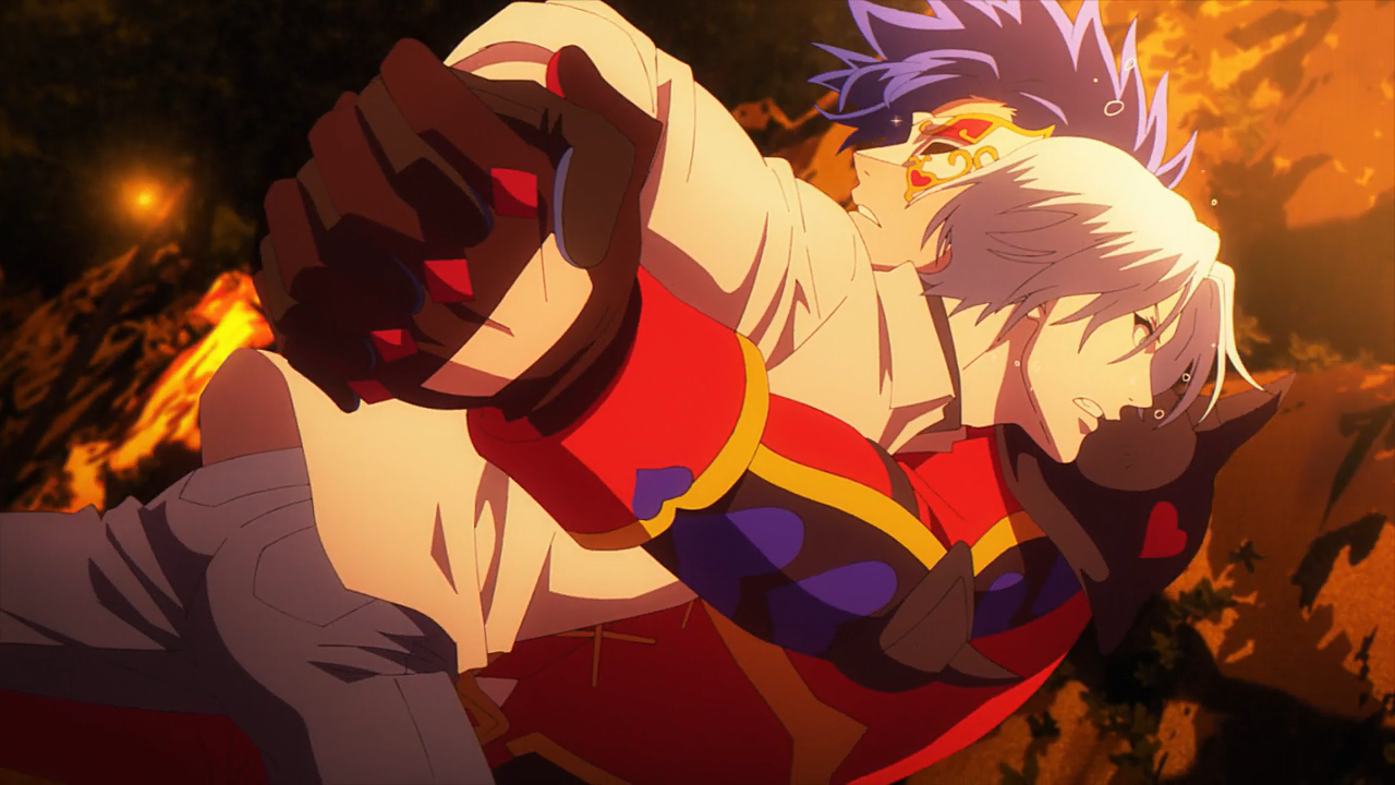 But even though Langa didn’t get hurt, it worries me how Adam seemed to have successfully enticed Langa into his world. It didn’t matter that he stopped after being stupefied by Langa’s genius way of dodging his “Love Hug”, because he still caught up again anyways. The way he freaking saw Langa as an angel, good grief, I snorted at that one. But it was an important moment because it gave us some insight about Adam’s character. He said he finally found his “Eve” (Adam and Eve), which leaves me with the impression that Adam has been longing to find someone who shares the same caliber as him, making it more fun to skate with. Thus he declares them his “true love”. That pretty much explains the showy entrance, such as rolling out the red-carpet, and handing him a giant bouquet of roses, and the terrifying intimacy he engages in during the race. Adam is not an opponent to be trifled with. Those who failed to meet his expectations were horrifically cast aside, some broken to the point they couldn’t skate again even if they wanted to.