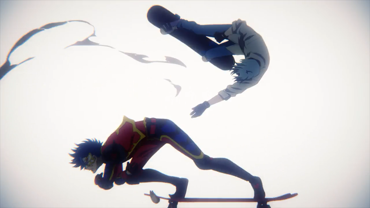 Talk about a stressful episode. Adam scares the shit out of me. He is such a creep with the way he does things, like Reki, I was terrified for Langa. I know Langa said he wouldn’t quit skateboarding if he had gotten hurt, but dude, you can’t skateboard if you get injuries that will prevent you from skateboarding, or worse– dead! (Frankly I’m surprised that Reki got away without a concussion or broken bones, especially since it hasn’t been that long since he gotten injured during while competing against Shadow. But this is fiction, so let’s just roll with it anyways.)
